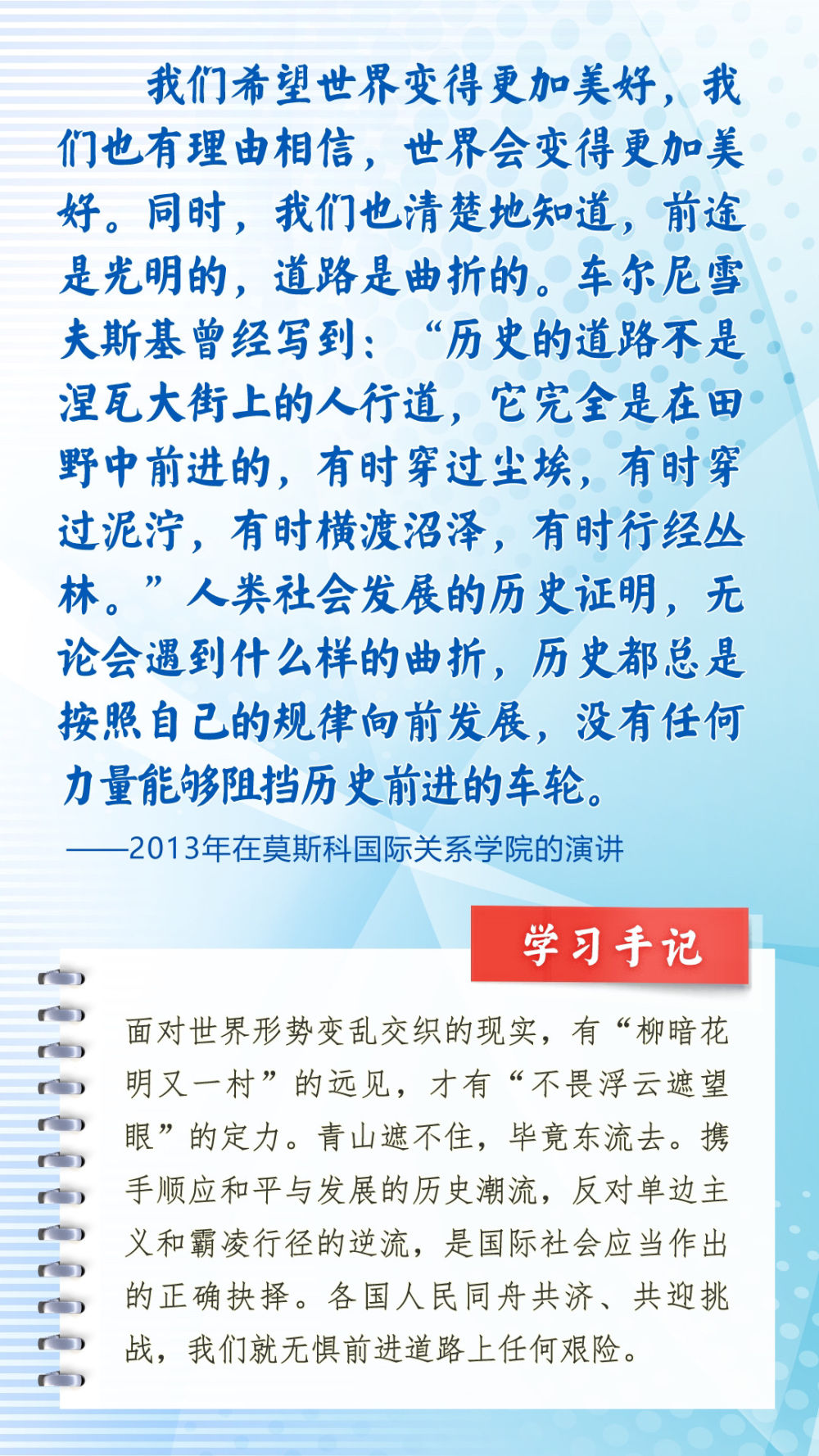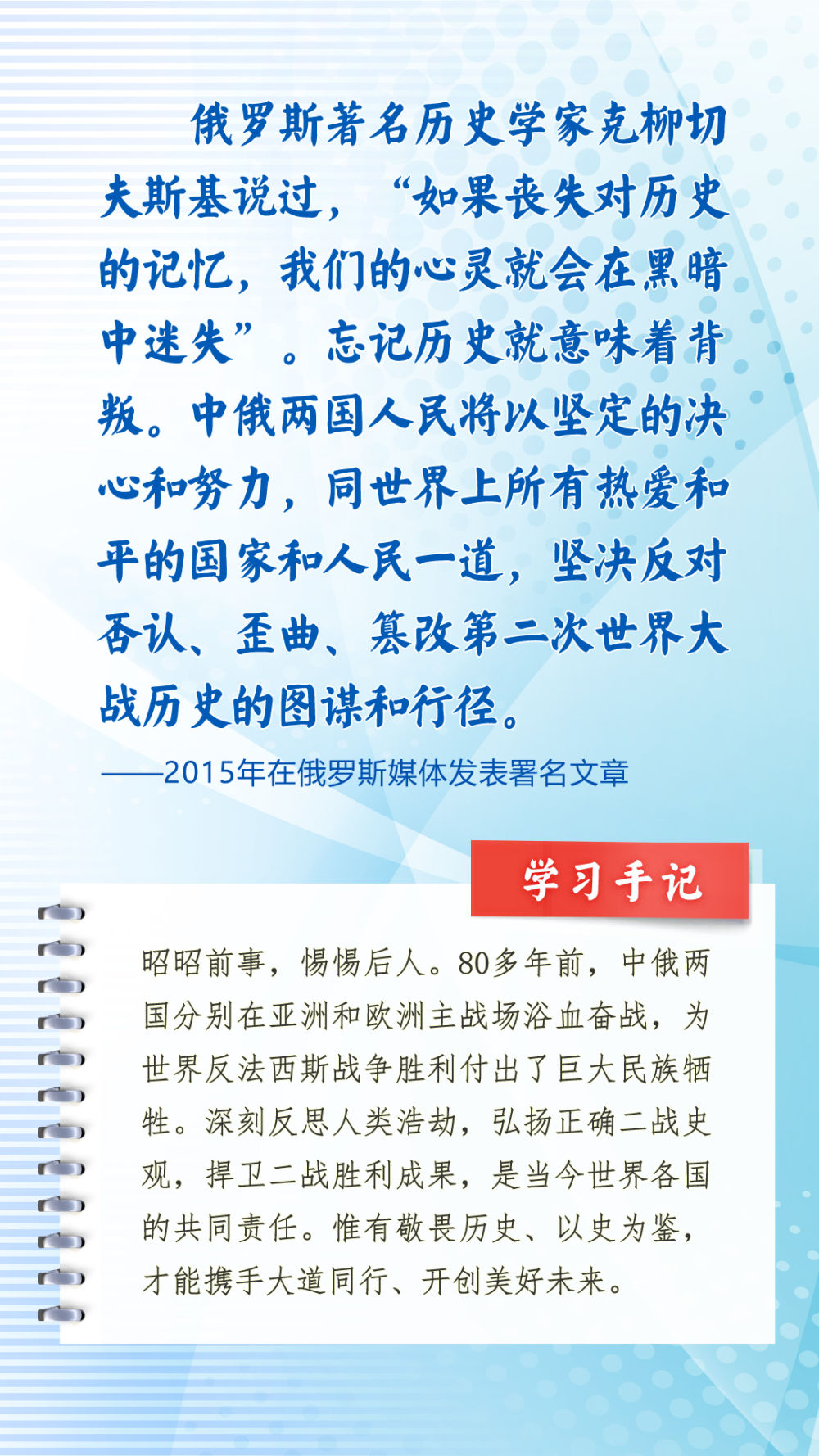 我們一起來學習品讀這些飽含哲思的論述,從中感悟新時代中俄關系在復雜的外部環境下堅毅前行之道,感悟習近平主席作為大黨大國領袖、世界級領袖的時代擔當與天下情懷。