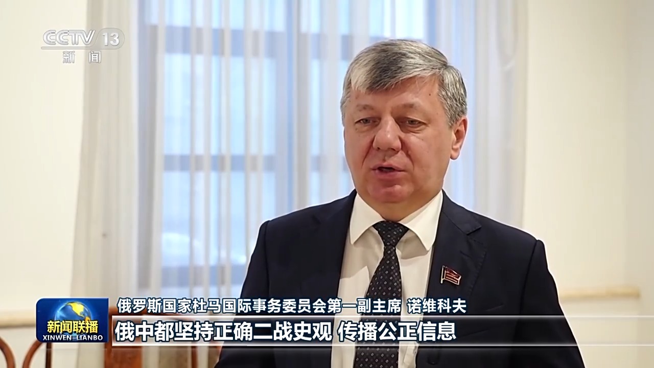 俄羅斯國家杜馬國際事務委員會第一副主席 諾維科夫:關于歷史觀,習主席有一系列重要論述,銘記歷史,和平才有希望。俄中都堅持正確二戰史觀,傳播公正信息,兩國領導人致力于推動建立更加平等和多極化的世界,構建人類命運共同體理念在全球獲得廣泛認同。我認為在偉大衛國戰爭勝利80周年的重要時刻,習近平主席來到莫斯科,對深化兩國關系、對全球都有重大意義。