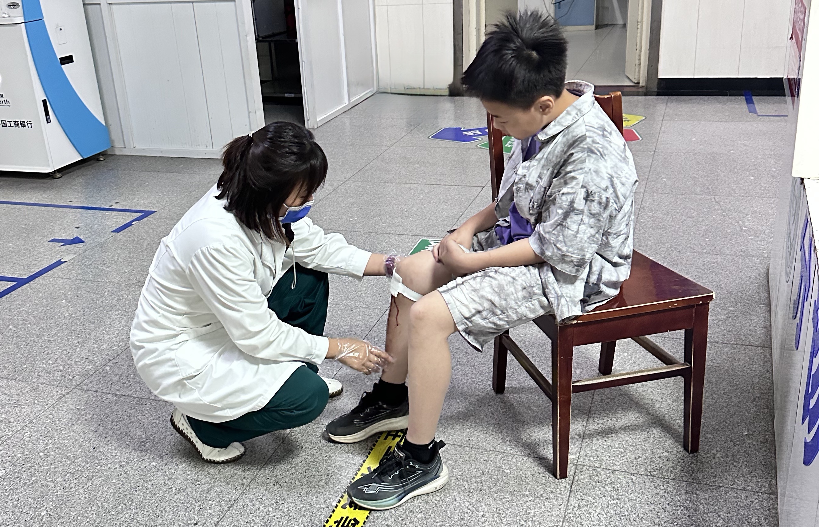 門簾被撩開的一剎那,涼風(fēng)裹著少年的哭喊涌入。一個少年的手指以詭異角度翹起。這時,張潔恰好剛騰出空兒來。她快步上前,一邊輕聲安慰,一邊熟練地檢查傷勢。她的動作輕柔而精準(zhǔn),眼神專注得不容絲毫差池,仔細查看傷口、判斷骨折類型,嘴里還不斷叮囑著注意事項,“別擔(dān)心,先固定好,一會兒疼痛就會緩解些,我們馬上安排進一步檢查。”
