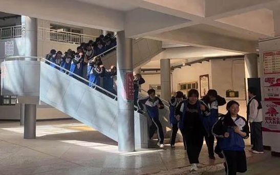 當日上午9點40分,隨著第一次信號發出,演練正式拉開序幕。上課教師立即組織學生到桌下及角落避險,并拿書包遮擋頭部,學生們迅速反應,按照既定動作進行避險。隨后,第二次信號發出,所有人員按照指定的路線,迅速有序地撤離教室。在撤離過程中,學生們保持冷靜,不慌不亂,單排行進,確保了疏散的有序進行。特別值得一提的是,針對殘障學生,學校制定了個性化疏散方案,并安排專人幫扶,確保每一位學生都能安全撤離。
