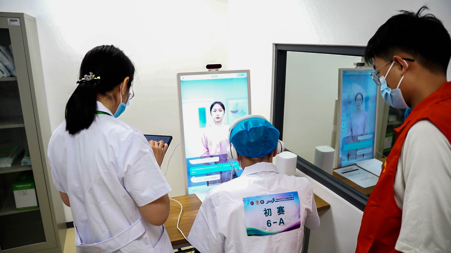 參賽學員首次運用AI病史采集訓練考核系統,是此次大賽的一大亮點。該系統實現了病史采集、癥狀反饋、溝通評分等環節全流程智能化評估,同時還能精準識別考生問診邏輯完整度與人文關懷表現。AI 病史采集訓練考核系統的引入,有效破解傳統標準化病人培訓成本高昂、病例庫局限的難題,系統化實現考核標準的精準統一,全方位強化考核客觀性,提升考核效率,為下一步多站式考核管理系統(OSCE考站系統)信息化推進AI病史采集智能考核,做了有益嘗試。
