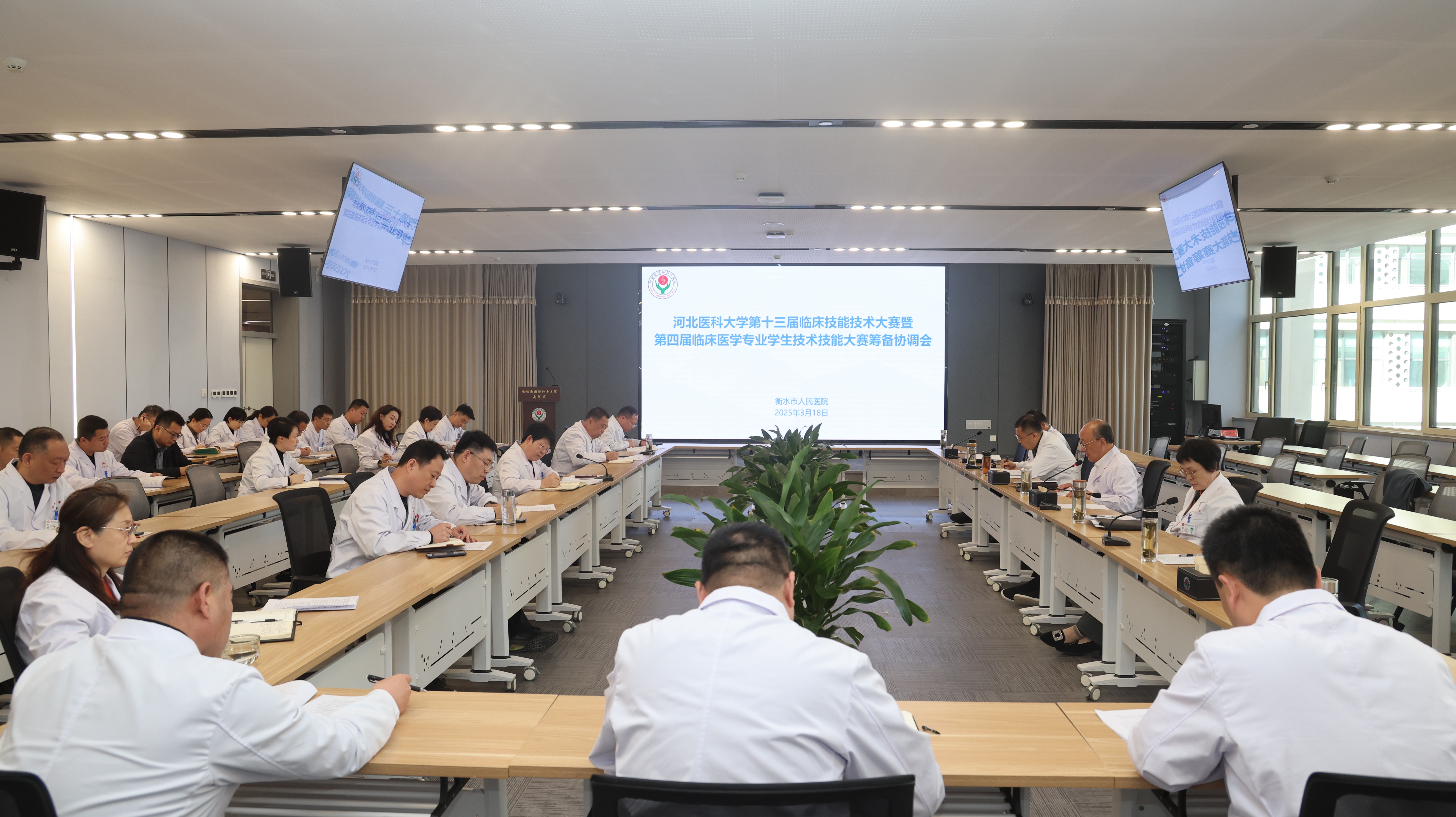 衡水市人民醫院(哈勵遜國際和平醫院)黨委提前周密部署安排,確保河北醫科大學第十三屆臨床技術技能大賽暨第四屆臨床醫學專業學生技術技能大賽成功舉行。圖為3月18日,院黨委進行工作調度。