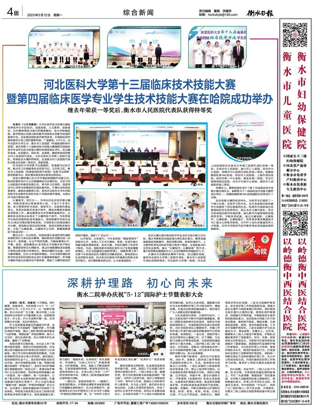 5月8日上午,由河北醫科大學主辦、衡水市人民醫院(哈勵遜國際和平醫院)承辦的第十三屆臨床技術技能大賽暨第四屆臨床醫學專業學生技術技能大賽在哈院南院區舉行。