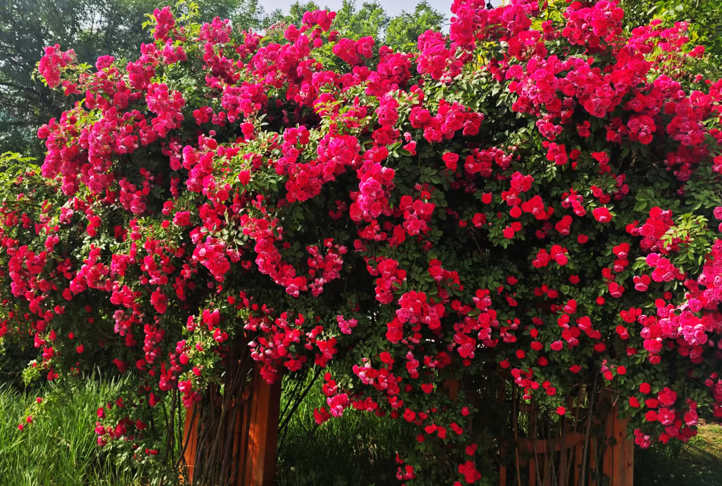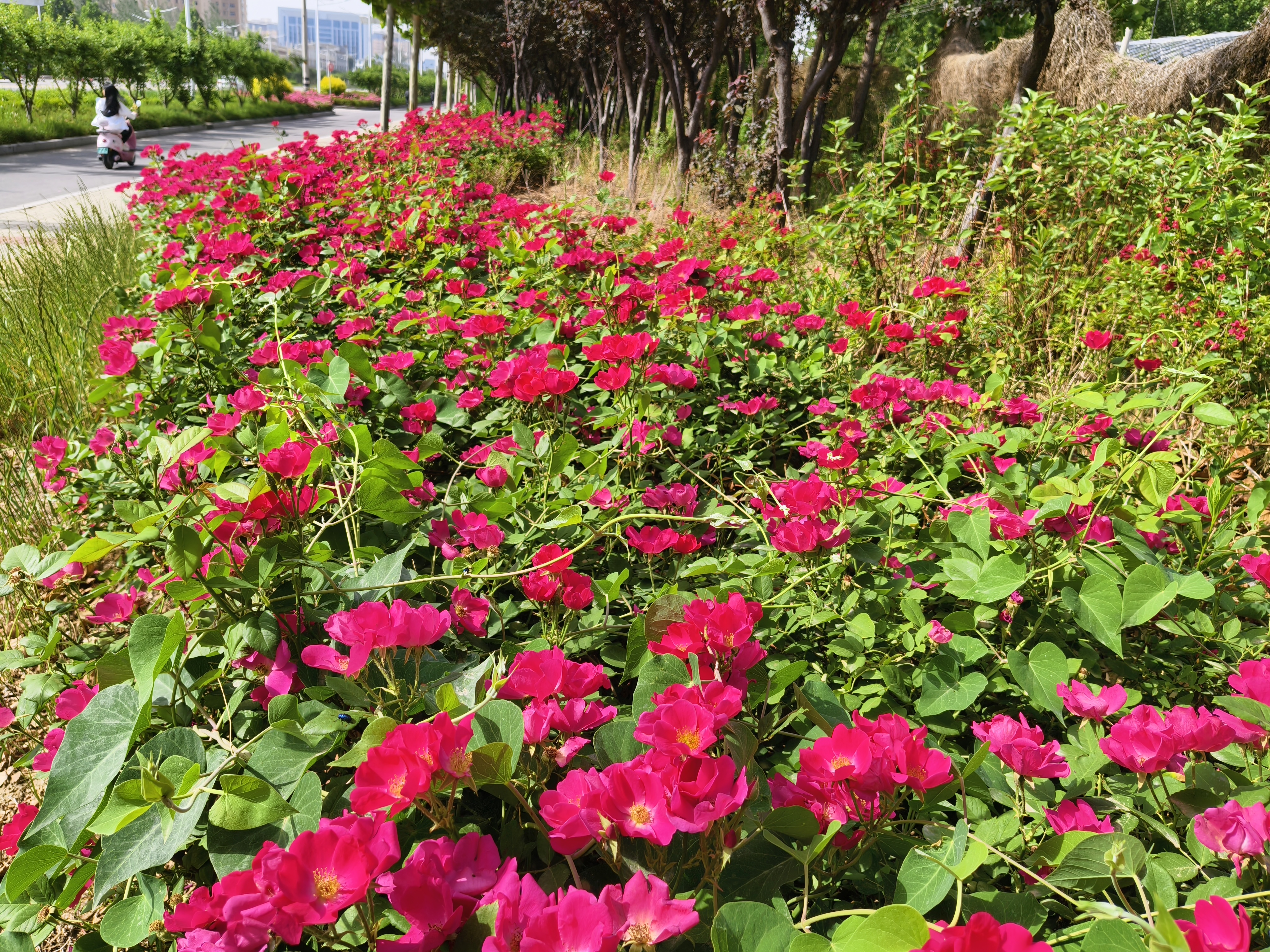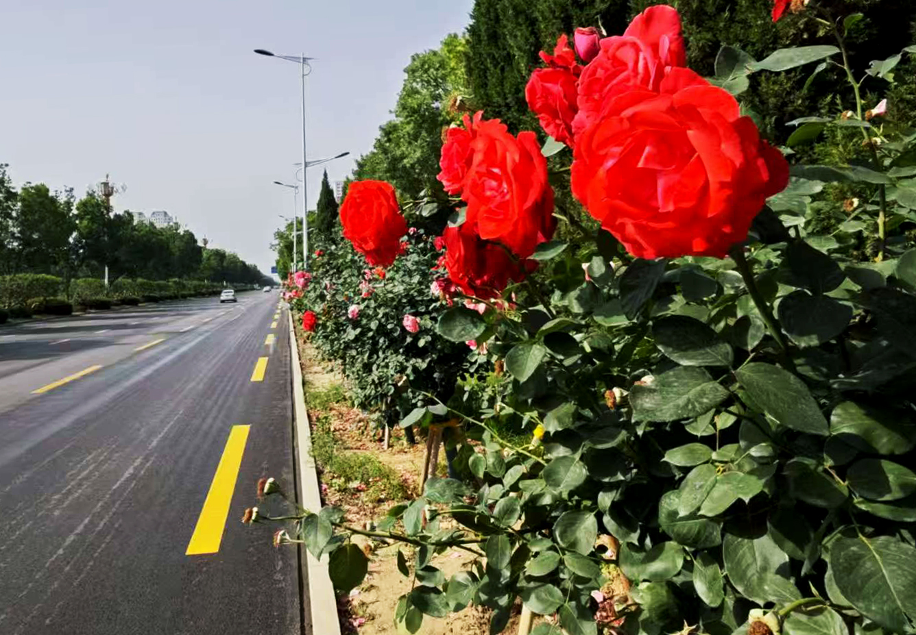 五月的風輕輕吹過,紅旗大街五岔路口的薔薇花悄然綻放,為城市增添了一抹絢麗的色彩。