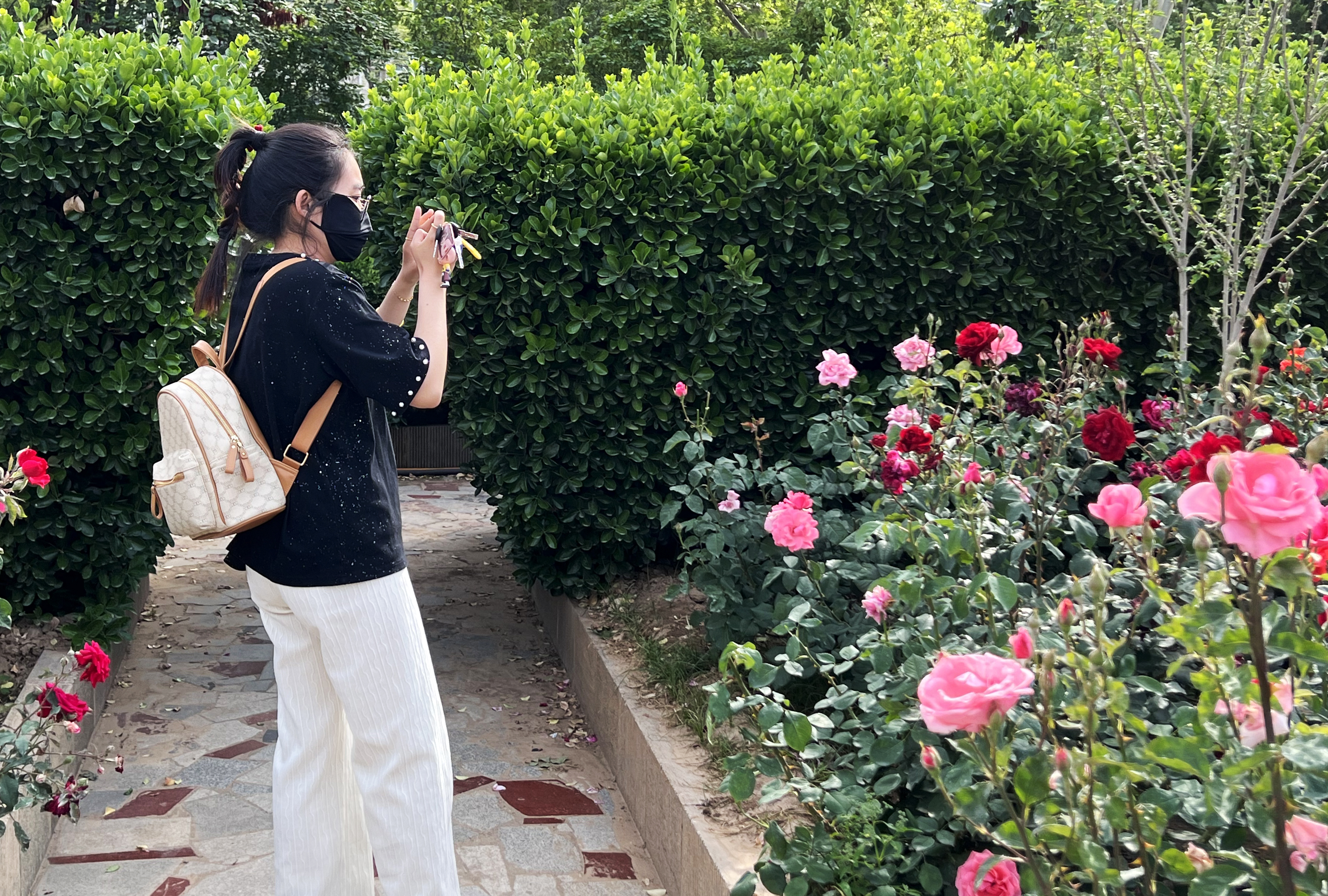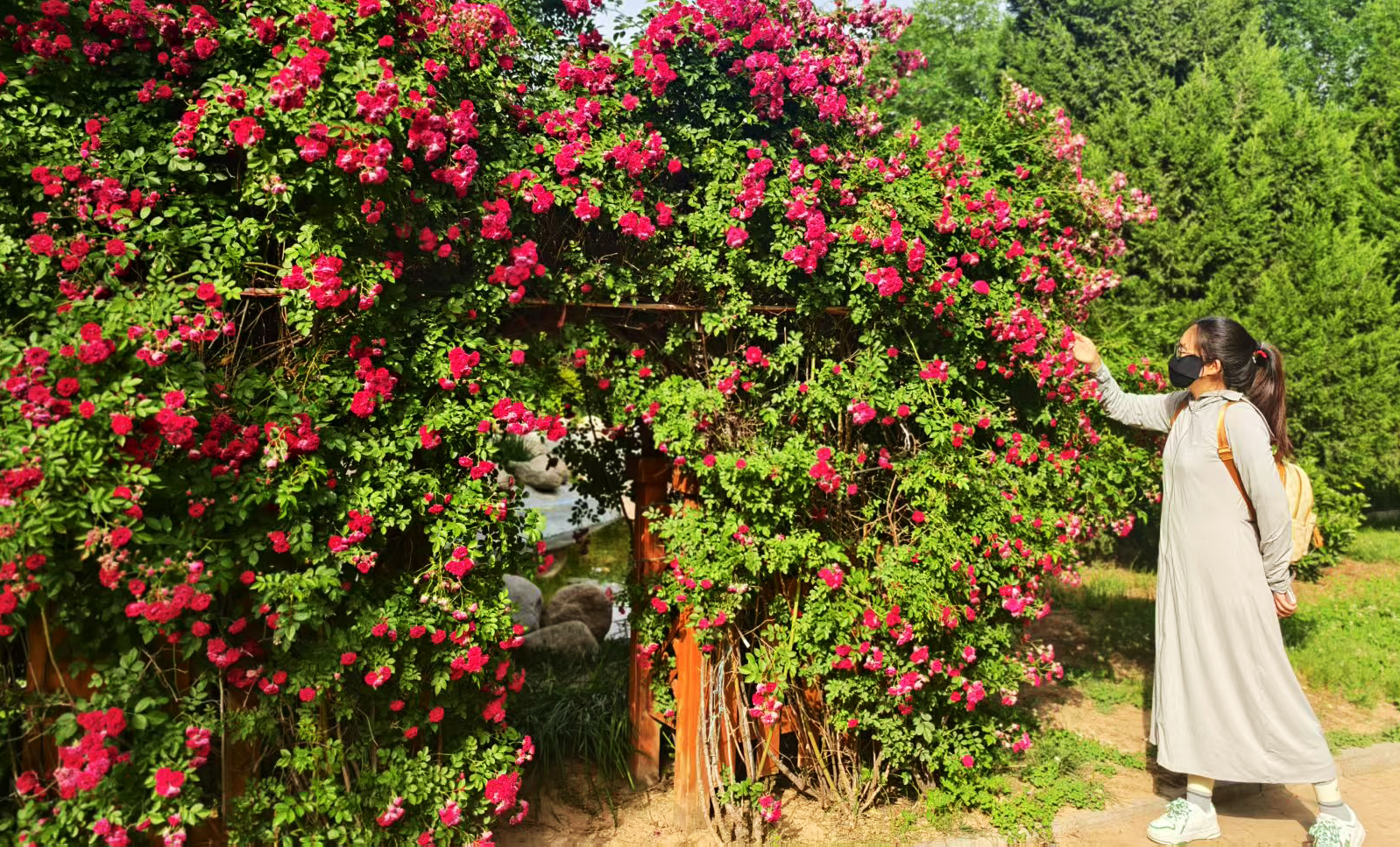 盛開的薔薇吸引了眾多市民和游客前來打卡拍照。大家紛紛拿出手機,記錄下這美好的瞬間。孩子們在花叢間嬉笑玩耍,老人們則靜靜地坐在一旁,享受著這愜意的時光。