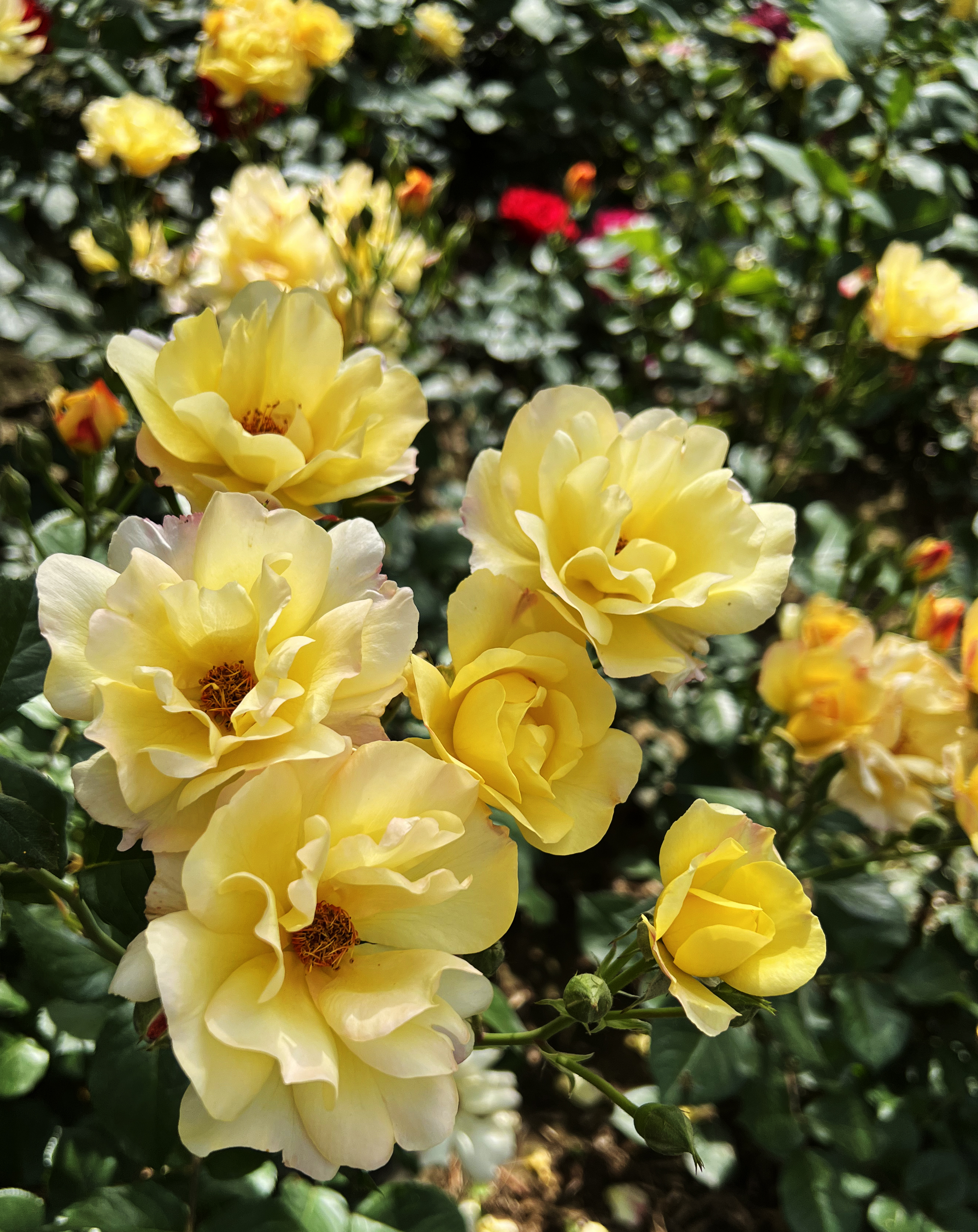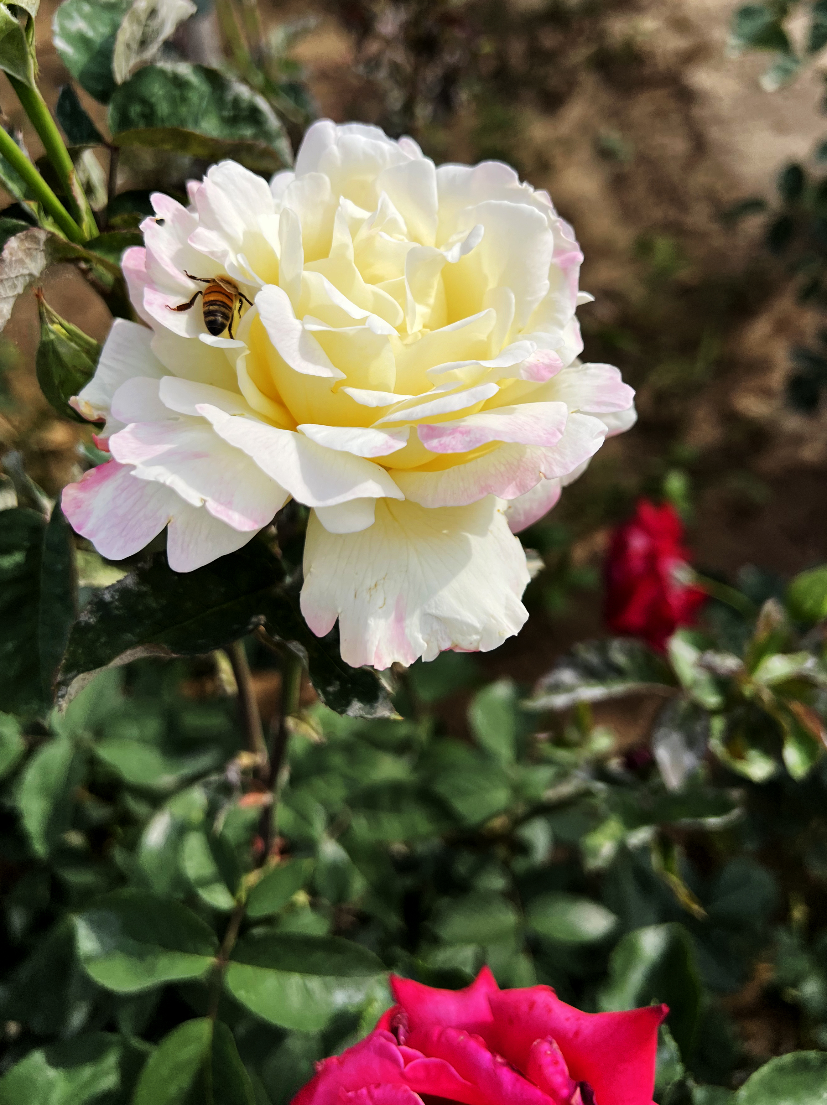 在休閑廣場南側漫步,一片月季花海映入眼簾。滿園春色關不住,朵朵花開齊爭艷,白的像冬日的初雪,隨風緩緩搖曳;紅的如跳動的火焰,釋放著無限熱情;黃的若金色的陽光,灑下溫暖光芒。