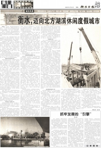 “以商貿(mào)中心建設(shè)為發(fā)端開(kāi)創(chuàng)的經(jīng)營(yíng)城市的道路,為衡水的建設(shè)展現(xiàn)了廣闊的前景。按照這條道路,繼1998年實(shí)施‘126工程’之后,1999年到2002年連續(xù)實(shí)施了‘十大工程’‘621工程’‘642工程’‘平改樓工程’。總投資36億元,新建擴(kuò)建54條道路,改造了大面積舊城區(qū),開(kāi)發(fā)商住面積343萬(wàn)平方米,建設(shè)了滏陽(yáng)水廠、污水處理廠,擴(kuò)建了集中供熱工程,開(kāi)辟了5個(gè)市場(chǎng),使城市功能更加完善,居住條件明顯改善,建成區(qū)擴(kuò)大了14平方公里。”(2002年7月10日《衡水日?qǐng)?bào)》3版《小城春秋》)