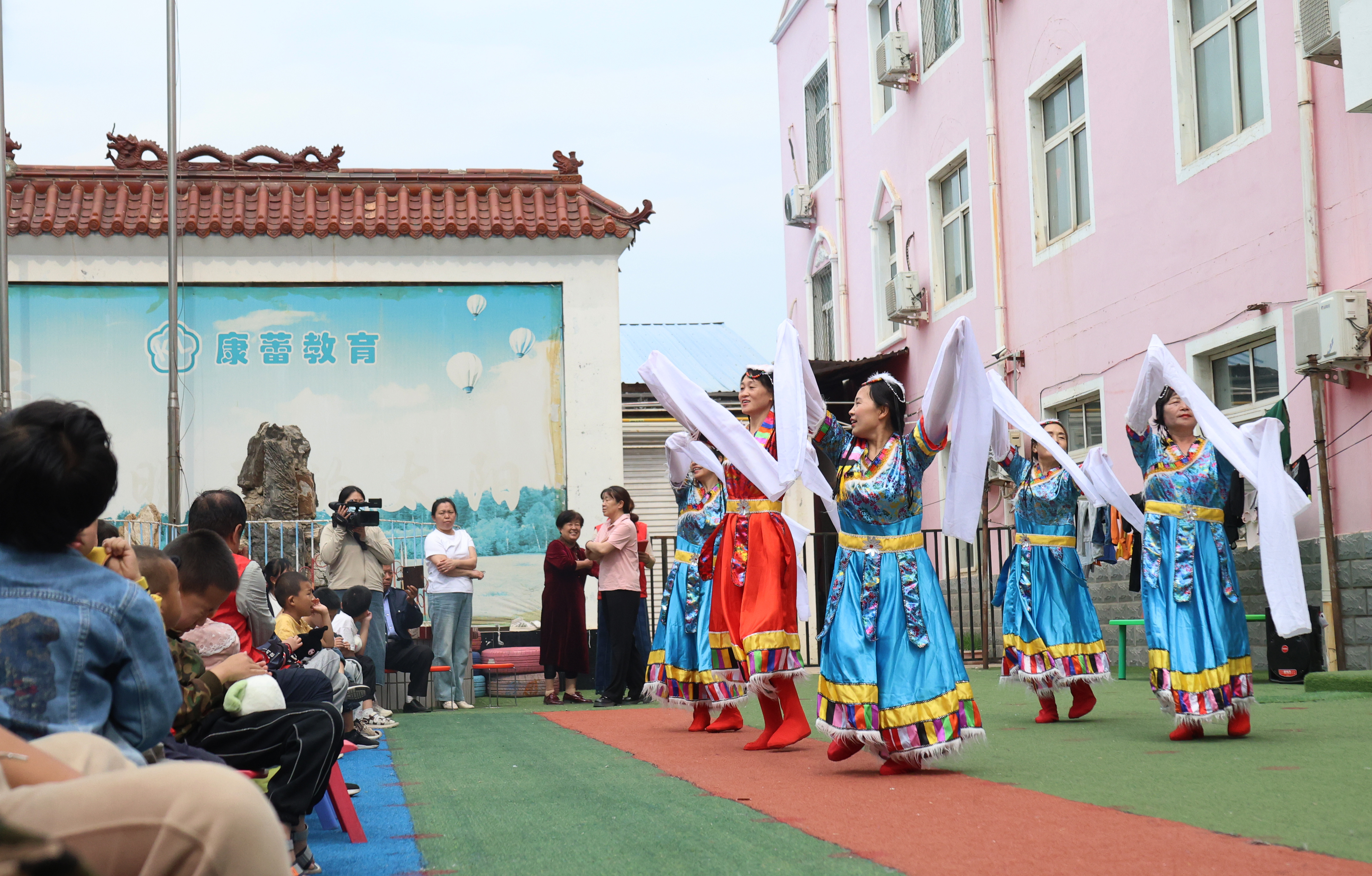 文藝演出在舞蹈《祝福祖國》中拉開帷幕,表演者身著紅綢盛裝,以歡快舞步點燃現場氣氛。河南豫劇團老藝術家帶來的《你家在那里》以醇厚唱腔展現傳統藝術魅力,唱至高潮時臺下孩子自發拍起小手;配樂朗誦《康蕾特教的六一頌歌》深情訴說"每個笑容都是未拆封的禮物",讓不少觀眾眼眶濕潤。《唱支山歌給黨聽》等紅色主題節目引發共鳴,全體人員合唱《沒有共產黨就沒有新中國》時,孩子們稚嫩的歌聲與成年人的和聲交織,將活動推向高潮。