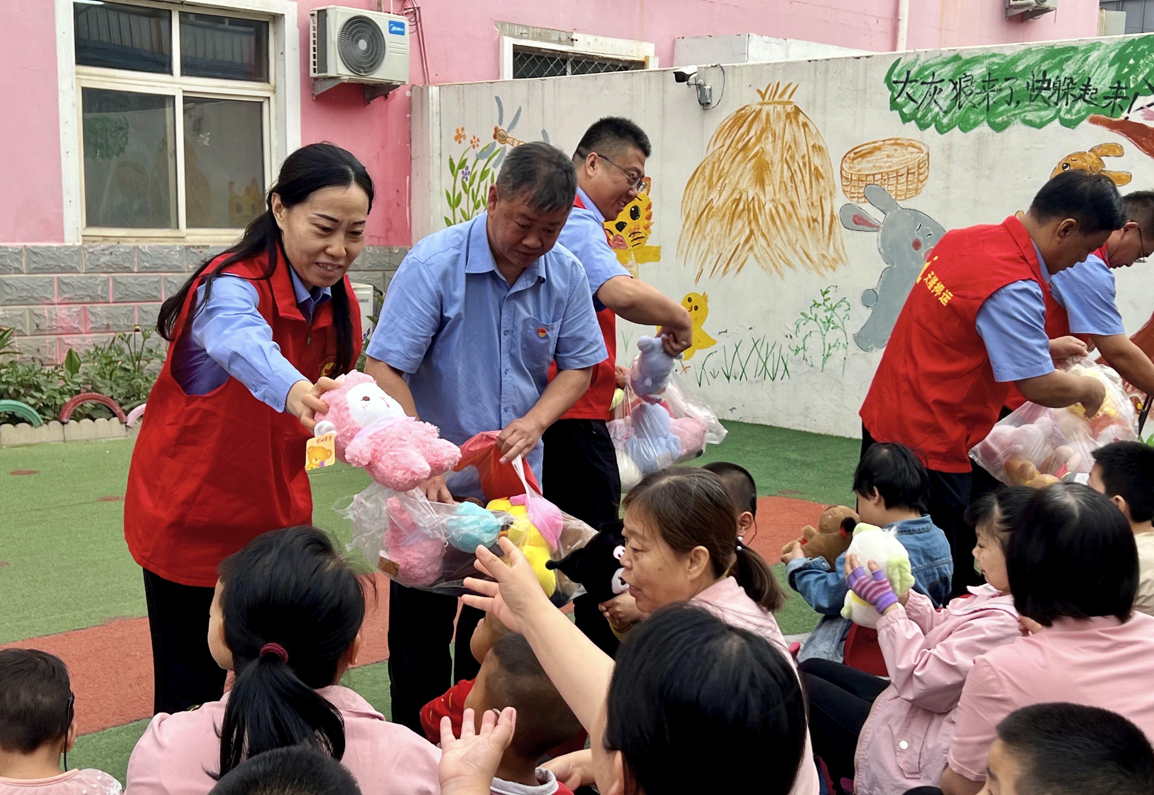 活動現場,愛心人士攜帶玩具、文具等物資來到校園。當志愿者將哪吒造型的毛絨玩具遞到一名男孩手掌心:“寶貝,提前祝你六一快樂!”他瞬間露出燦爛笑容;另一名女孩接過粉紅色的小兔子玩具時,用生疏的手語比出“感謝”。除學習用品外,愛心團隊還準備了牛奶、面包等食品。