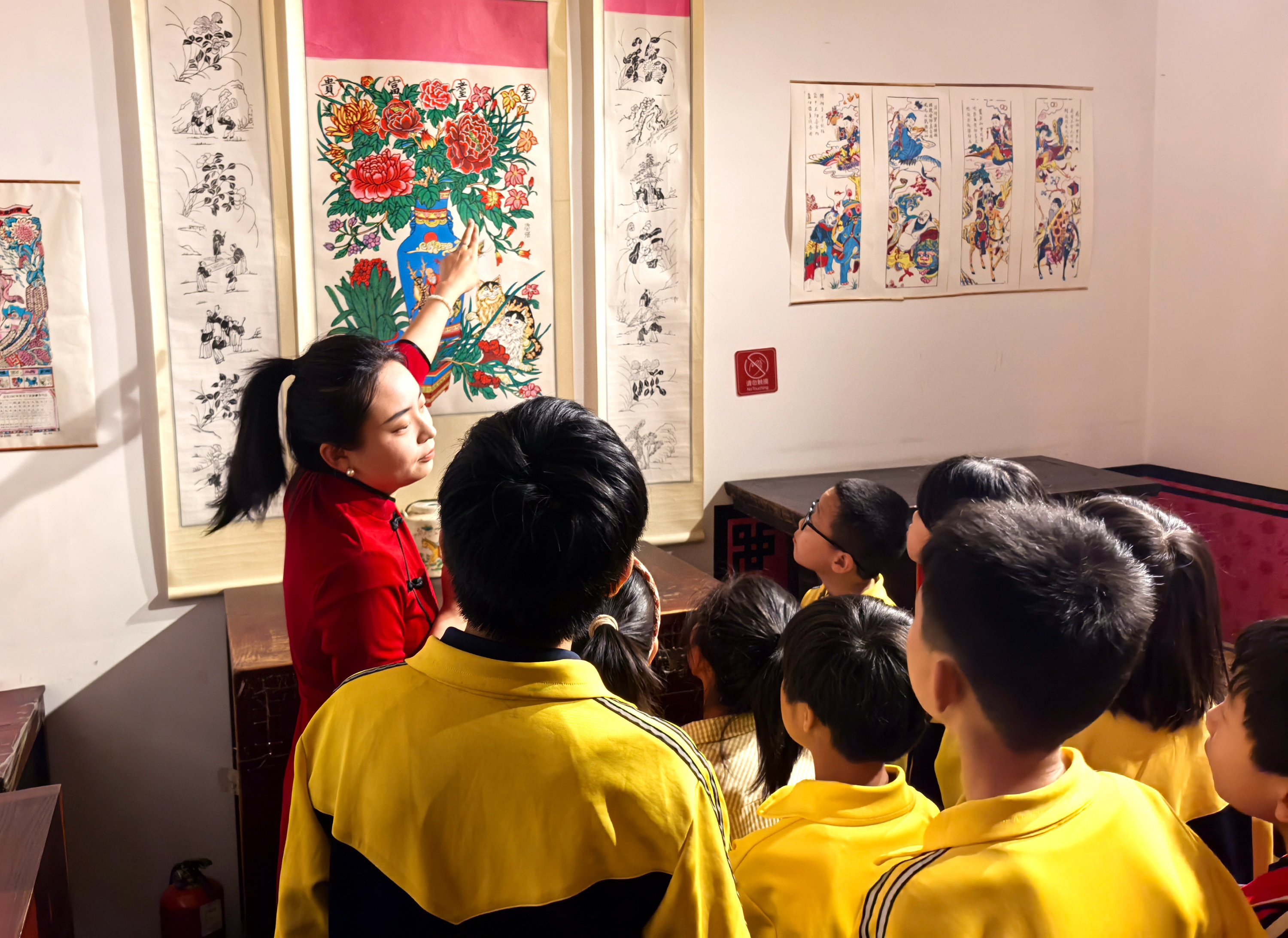 活動中,孩子們走進武強年畫博物館,在講解員的生動講述中,了解到武強年畫起源于宋元、興盛于明清的歷史脈絡,以及勾描、刻版、印刷等傳統制作工藝。展廳內色彩斑斕的“年年有余”“福祿壽喜” 等經典年畫作品,讓孩子們深切體會到先輩對美好生活的向往。