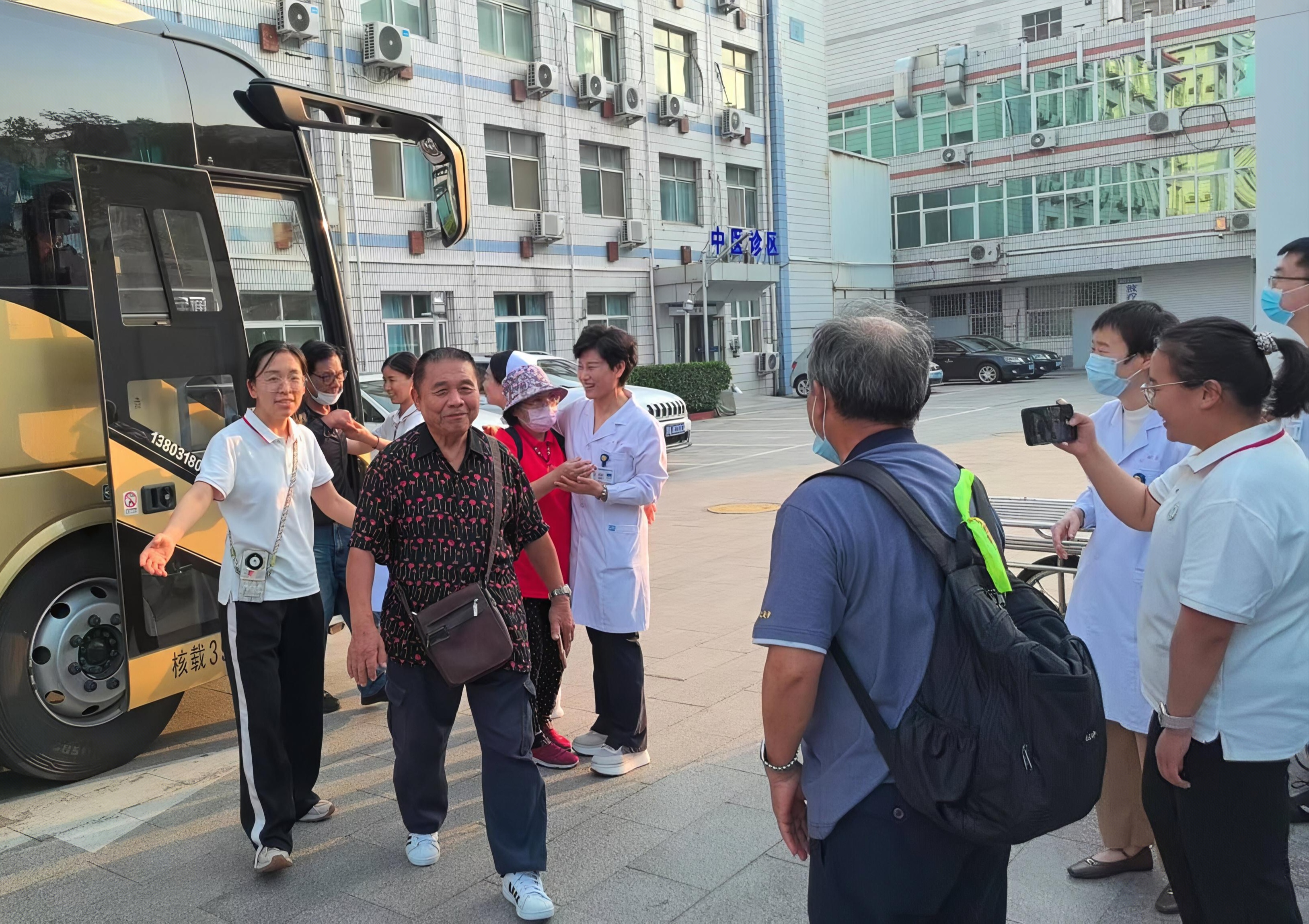 醫道高低,患者是晴雨表,大概是受環境和氛圍的熏陶,走進衡水市人民醫院(哈勵遜國際和平醫院)疼痛科,每一位醫護人員都是那么熱情、友善,給人“賓至如歸”的感覺。似乎患者不是去看病,倒像是赴一場盛大的歡迎儀式。圖為臺胞就醫團抵達哈院主院區。