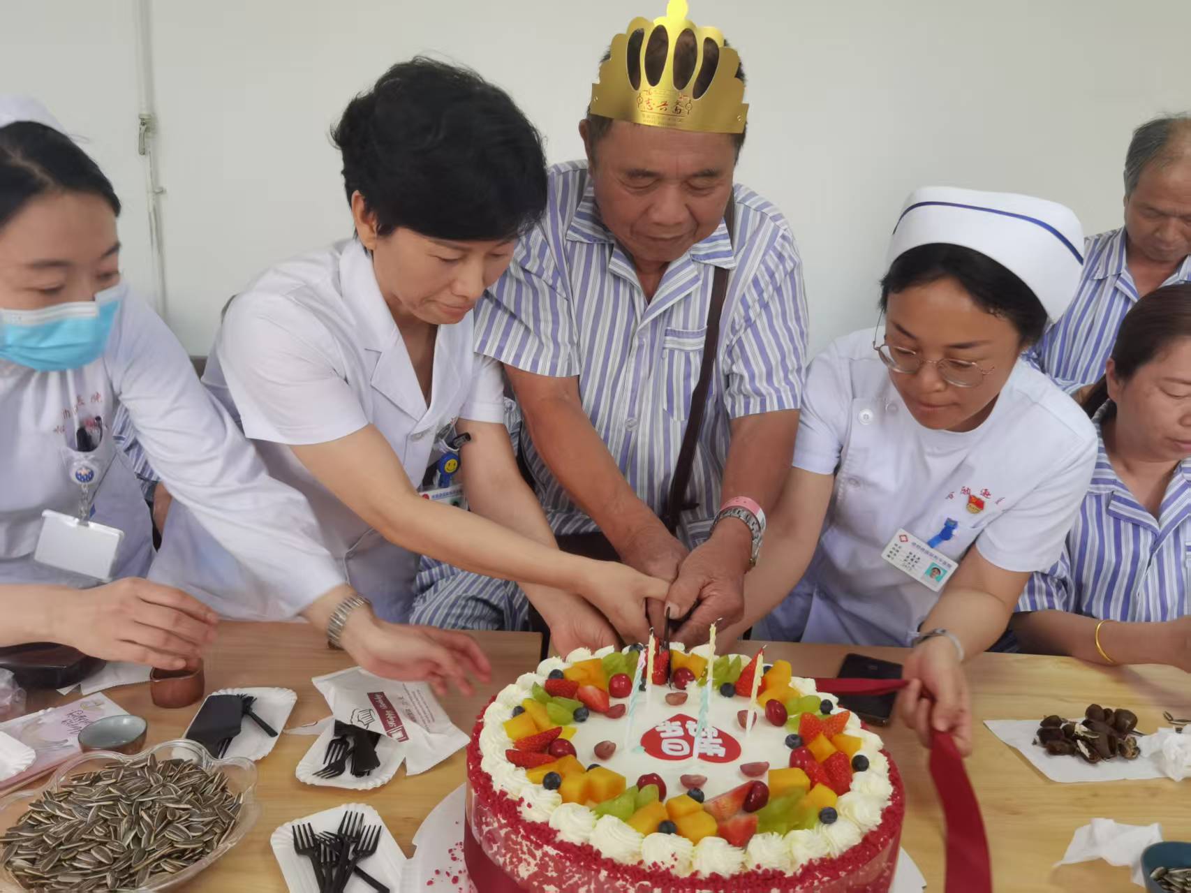 采訪結束的時候,正巧趕上科室為臺胞陳肇嘉籌備的生日會。當醫護人員推著綴滿新鮮水果的蛋糕緩緩走進病房,不少臺胞都紅了眼眶。“祝你生日快樂,祝你生日快樂……”歌聲響起,搖曳的燭光映照在所有人的臉上,歡笑聲與祝福聲此起彼伏,這份跨越山海的情誼,順著香甜的蛋糕香氣,在病房里肆意流淌,將兩岸同胞血脈相連的溫暖,暈染得愈發悠長動人。