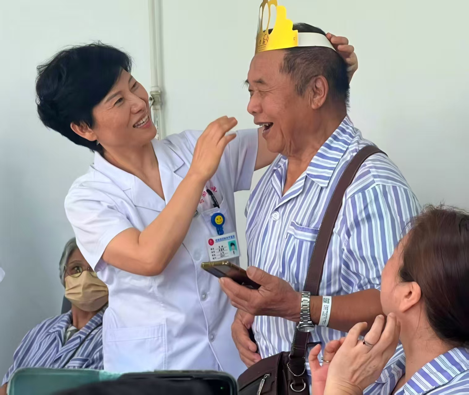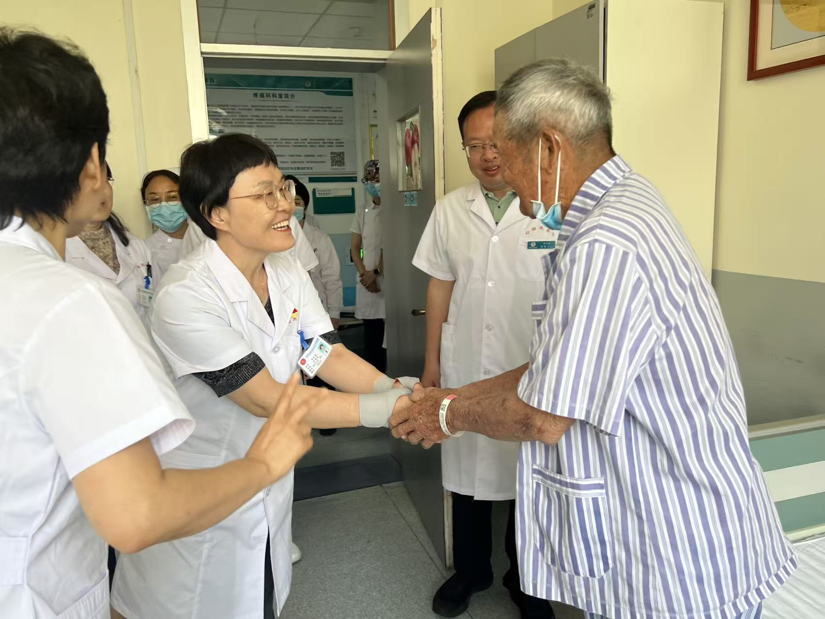 世界鎮痛日,由國際疼痛學會(IASP)于2004年倡議設立,旨在提高全球對疼痛管理的認識和改善疼痛治療的服務質量。每年10月的第三個周一,全球各地都會舉行各種活動,以提升公眾對疼痛防控的重視。哈院疼痛科不單純是治療患者的疾病,還要治療有疾病的患者,同時還能指導疼痛康復、疼痛預防,贏得了廣泛認可。圖為第二次前來就醫,臺胞廖來金女士見到徐暉大夫,表達對科室治療理念的高度認可。