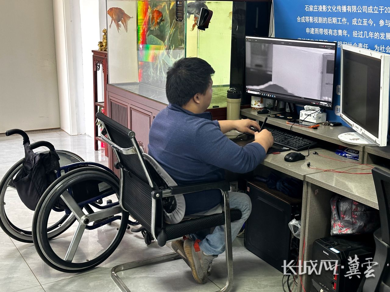 十幾年前,初識影視后期的申建雨,也只是跟隨河北省殘聯聘請的老師去影視后期基地學習的一名學員。那時的他,輾轉做過手機維修、旅館收銀、網絡游戲代練……一次次“差點成功”后的放棄,并未熄滅他的斗志。