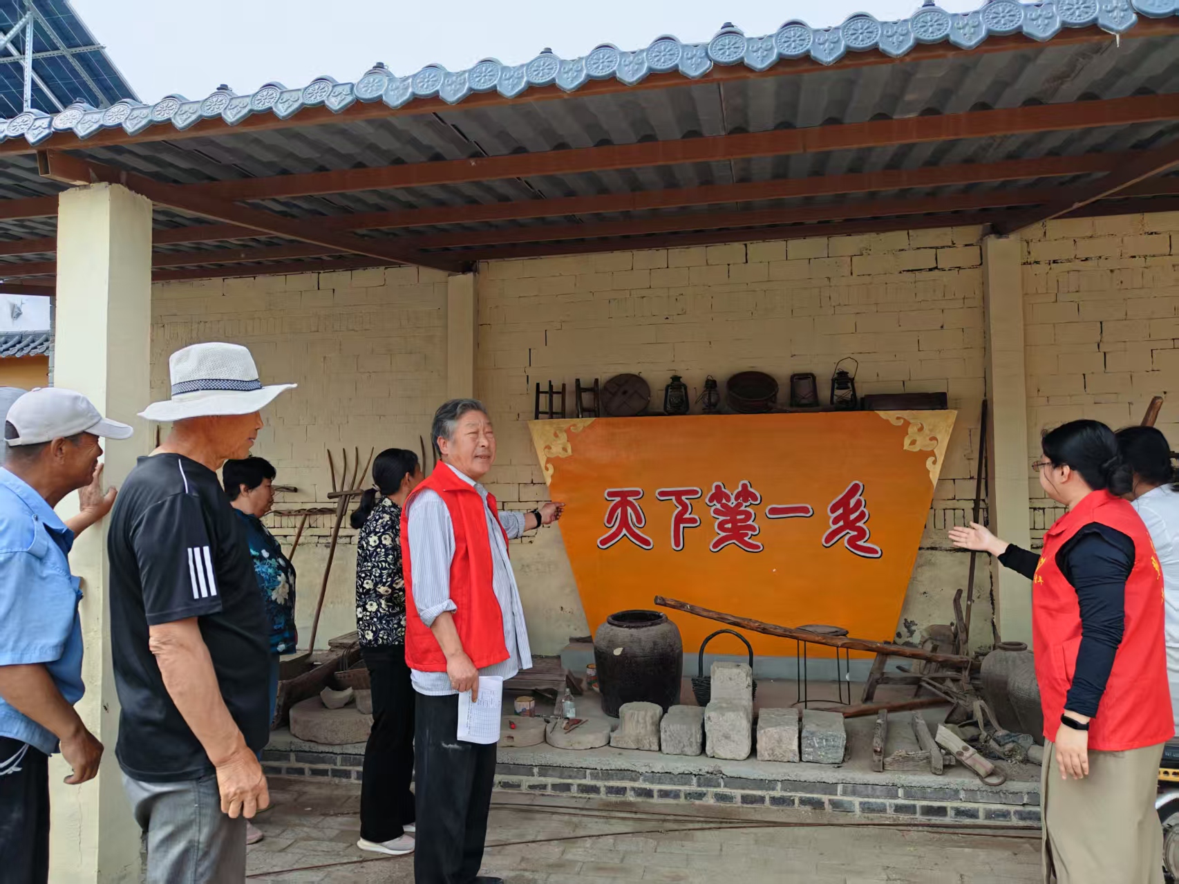 沒過多久,鄉親們陸續聚集到家風家教墻一旁。看著展板上熟悉的村莊歷史故事、家族變遷史,還有院里陳列的斑駁農具,村民邊立靜感慨道:“在外務工這些年,總念叨村里的老物件、老故事。今天‘小麥穗’又把這些‘寶貝’端出來,俺這心里頭,熱乎!”大家紛紛點頭,想再聽聽家鄉塵封的往事。
