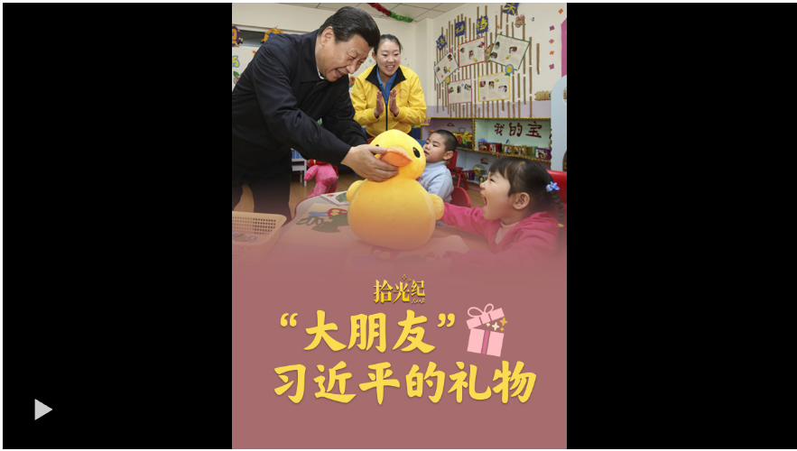 給孩子們送去書包、文具,給福利院兒童帶去毛絨玩具......一件件禮物、一聲聲叮囑,見證著“大朋友”習近平對小朋友們的溫暖關懷。“‘六一’國際兒童節快要到了,祝全國的小朋友們節日快樂!”