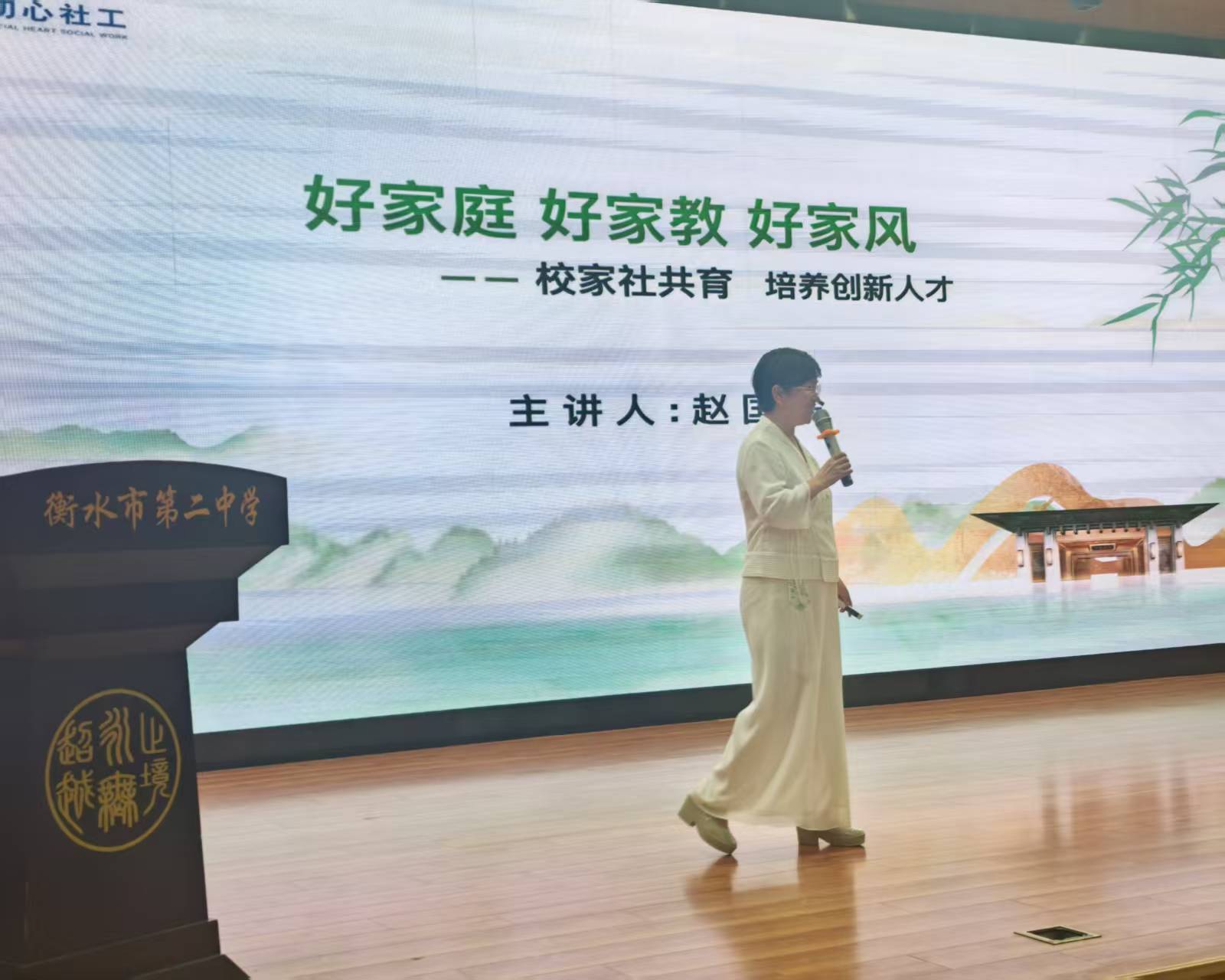 以良好家風沁潤心靈,涵養文明新風尚?,F場,高級心理咨詢師、衡水市未成年人心理健康輔導中心負責人趙國玲老師以《好家庭 好家教 好家風》為題,結合中華優秀傳統文化與現代家庭教育理念,闡釋家風對家庭凝聚力、子女價值觀塑造的深遠影響,并從心理學視角剖析傳統文化中的家教智慧,針對親子溝通、家風融入日常教育等熱點問題,通過真實案例為師生提供科學指導,號召校家社攜手,共同呵護青少年“心”健康?;顒蝇F場,主辦方還邀請了來自北京的家庭家教家風調研團的專家們,就該校家風建設對學生心理健康塑造的影響進行指導。