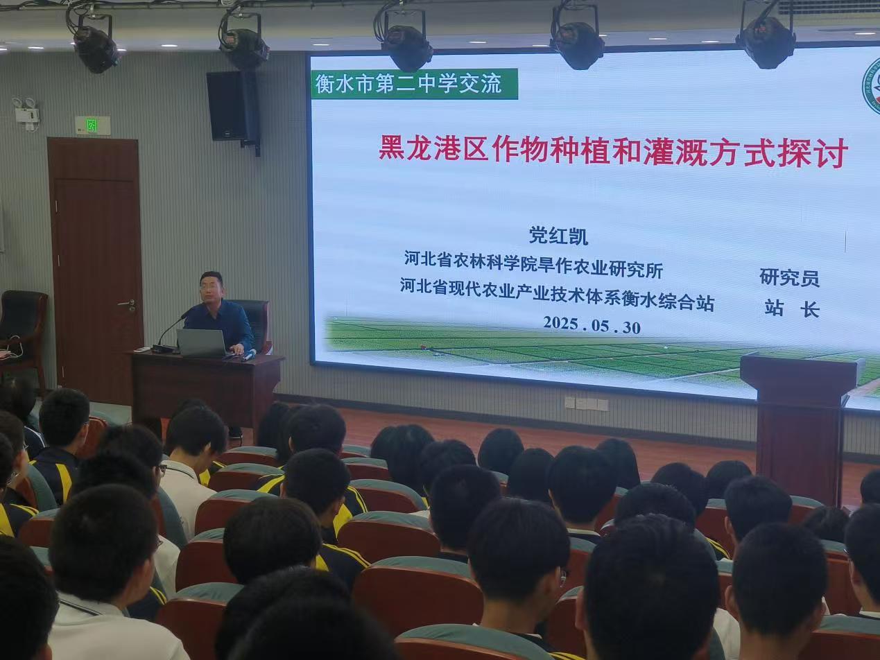 科技服務“零距離”。同一天,在景縣秋實種植業農民專業合作社的麥田里,一場別開生面的“田間課堂”開講。旱作所科研團隊以主推品種“衡4399”“衡觀35“衡麥29”等為樣板,向農民現場示范勻播種植、播前播后鎮壓、土壤保育及“一噴三防”等關鍵技術,開展了生動的地下水壓采區糧食作物單產提升示范觀摩培訓會。與此同時,抗旱節水專家走進中學校園,在青少年心中播撒科學種子。