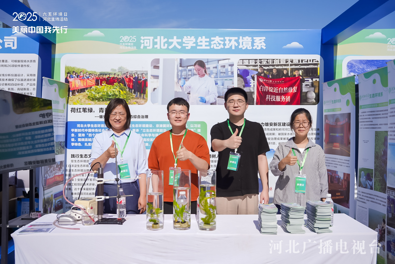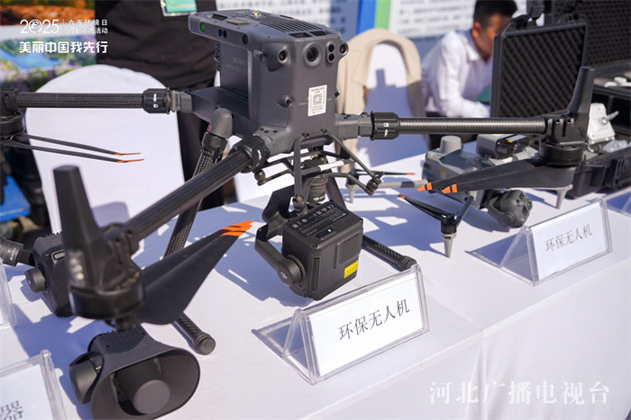在活動現場的生態展覽區,環保無人機、污染物降解裝置、光伏發電、白洋淀水生植物樣本等實物展示著河北生態領域的科研創新、校園與企業的環保實踐。