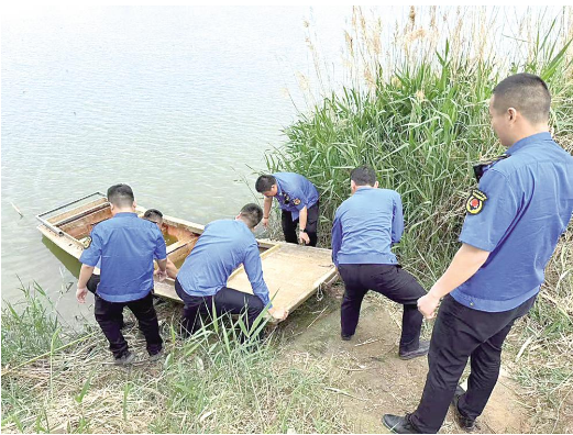 衡水濱湖新區(qū)綜合管理局查處景區(qū)“三無(wú)”船只。