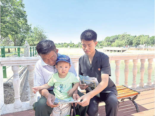 法官助理李維斌在運(yùn)河沿岸開(kāi)展普法宣傳。