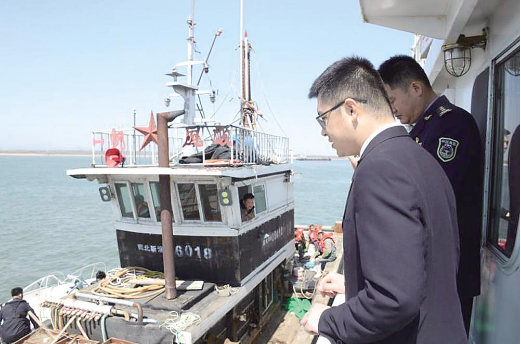 北戴河新區(qū)海洋和漁業(yè)局工作人員登船檢查,檢察干警進(jìn)行現(xiàn)場(chǎng)監(jiān)督。