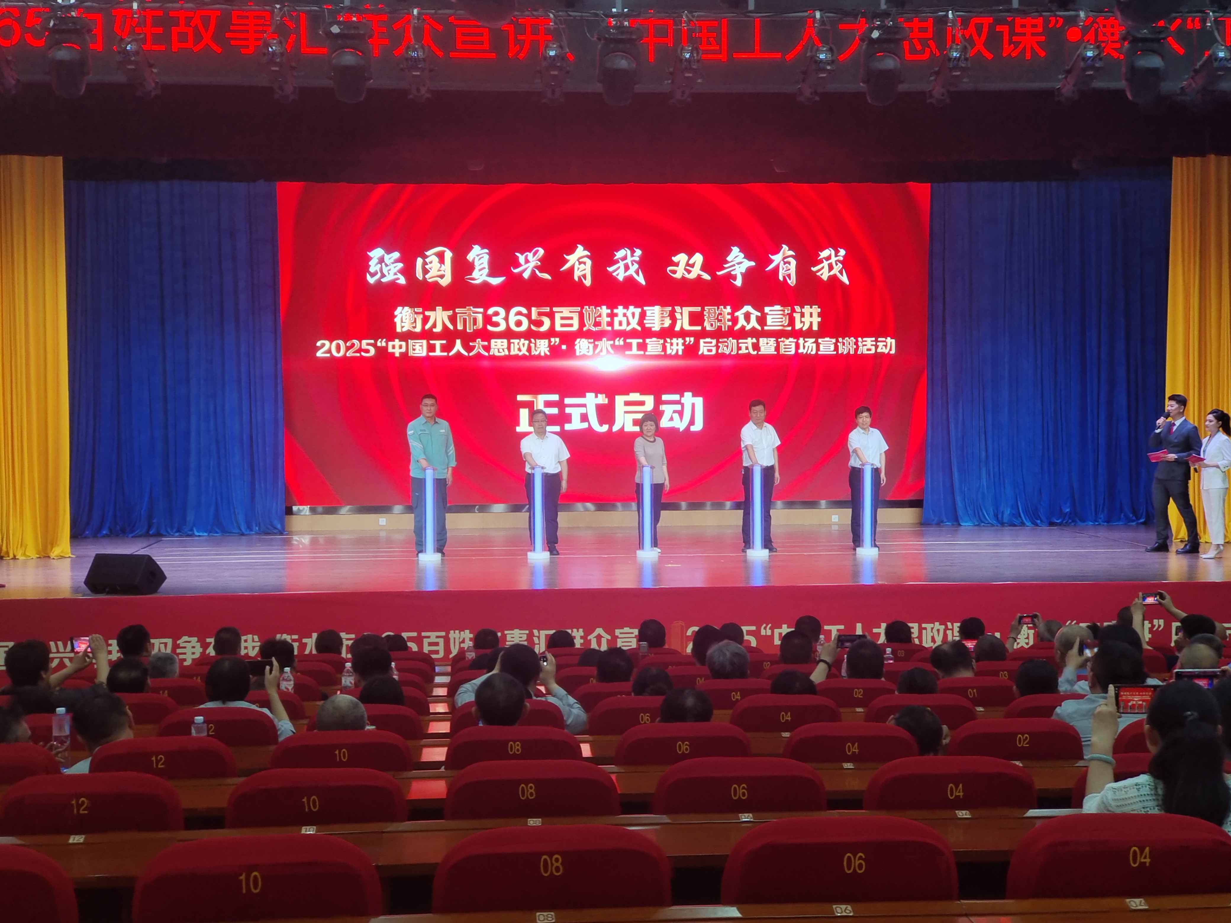 6月6日,強國復興有我、雙爭有我——衡水市365百姓故事匯群眾宣講、2025“中國工人大思政課”·衡水“工宣講”啟動式暨首場宣講活動在市工人文化宮舉辦。活動由中共衡水市委宣傳部、市總工會聯合主辦,通過衡水楷模、勞模工匠、基層榜樣講述奮斗故事,弘揚時代精神,凝聚奮進力量。