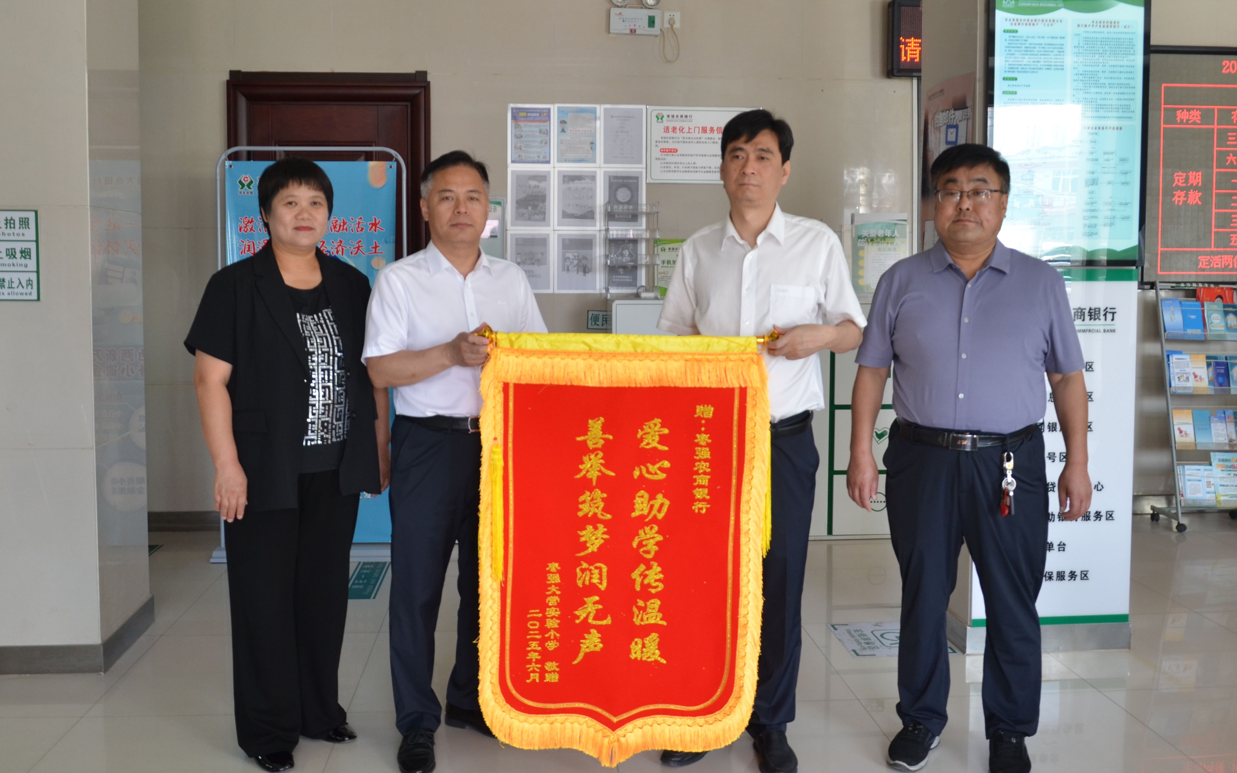 6月6日,棗強(qiáng)縣大營(yíng)鎮(zhèn)大營(yíng)中心小學(xué)校長(zhǎng)劉懷安、棗強(qiáng)大營(yíng)實(shí)驗(yàn)小學(xué)董事長(zhǎng)劉玉磊、校長(zhǎng)于紅霞一行專程來(lái)到棗強(qiáng)農(nóng)商銀行,將一面鐫刻著“愛(ài)心助學(xué)傳溫暖,善舉助夢(mèng)潤(rùn)無(wú)聲”的錦旗贈(zèng)予該行,以感謝該行在“校園一卡通服務(wù)平臺(tái)”建設(shè)中的大力支持。