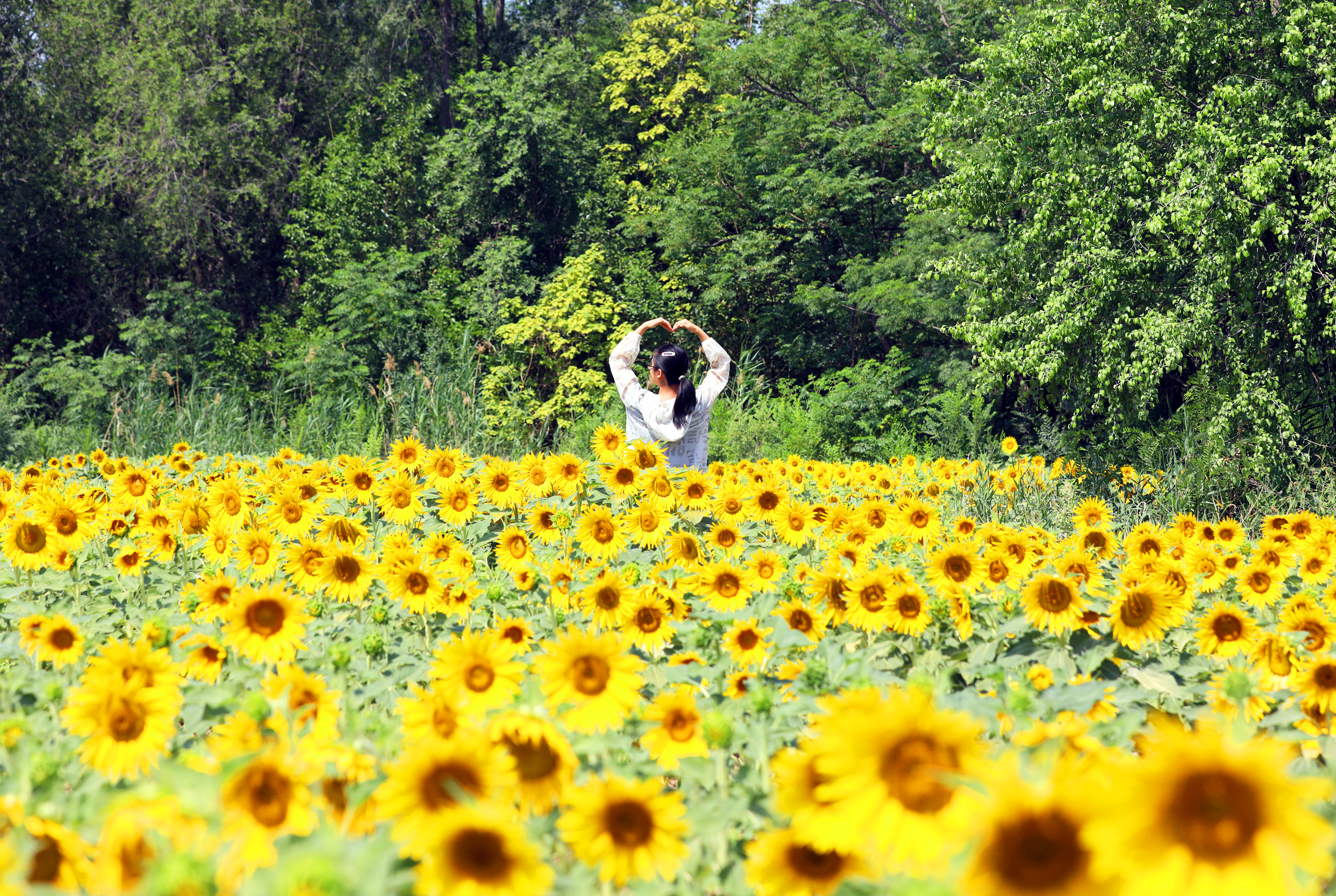 近日,濱湖新區王家口村附近,成片向日葵競相綻放,金燦燦的花盤在綠葉的襯托下耀眼奪目,與波光粼粼的衡水湖共同構成一幅絢麗的生態畫卷。