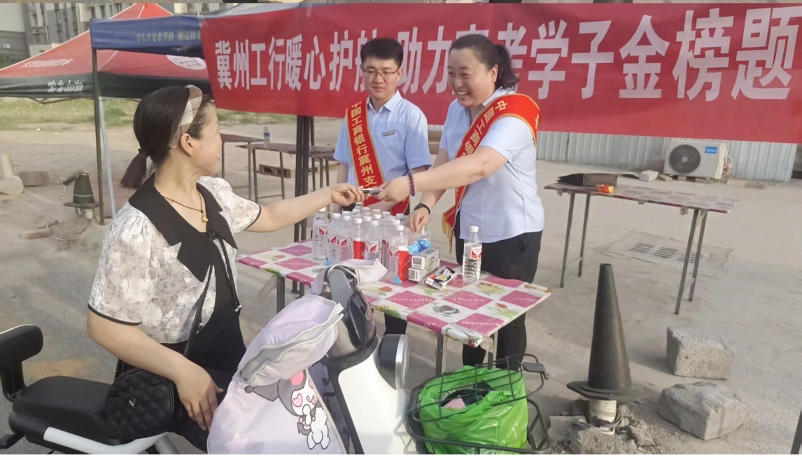 工行饒陽支行志愿服務團隊一邊提供高考服務一邊開展反詐宣傳。