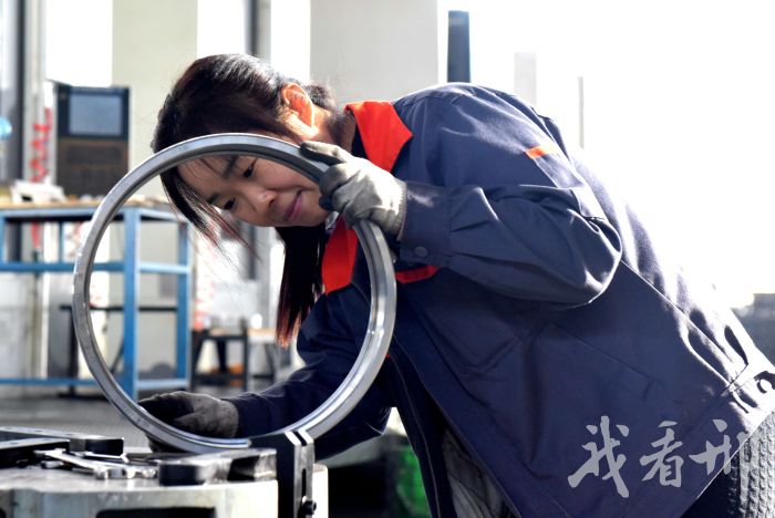 ↑利用立式數控車床,工人進行產品檢查檢測。葉曉強攝