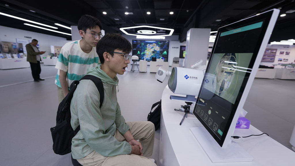 醫療大健康體驗區安排岐黃智鏈、智慧醫院、未來診室、慧診賦能、智護康寧、生命解碼6大板塊,展示臨床專病智能輔助決策、中醫智能輔助診療、智慧康養等18個場景、57項技術產品。既有可望聞問切四診合參多模態的中醫AI輔助診斷設備、30秒內完成望診檢測的華稷AI中醫望診儀,也有來自浙江強腦科技的仿生手和仿生腿、可實時計算300余項人體測試指標的阜外醫院智能人體運動能力評估系統。
