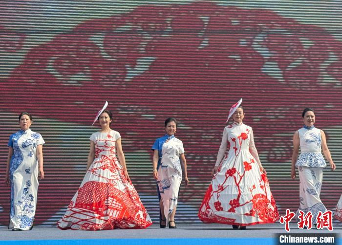 6月13日,2025年“文化和自然遺產日”河北主場城市活動現場的衡水剪紙元素服裝秀。 邢璐 攝