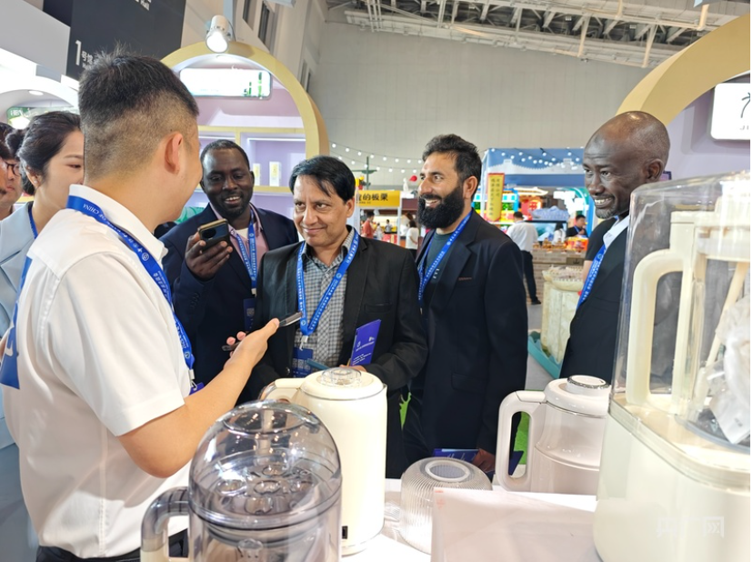 巴西采購商在消費(fèi)市集“夢廊坊”展區(qū)挑選心儀商品(央廣網(wǎng)記者 王藝霖 攝)