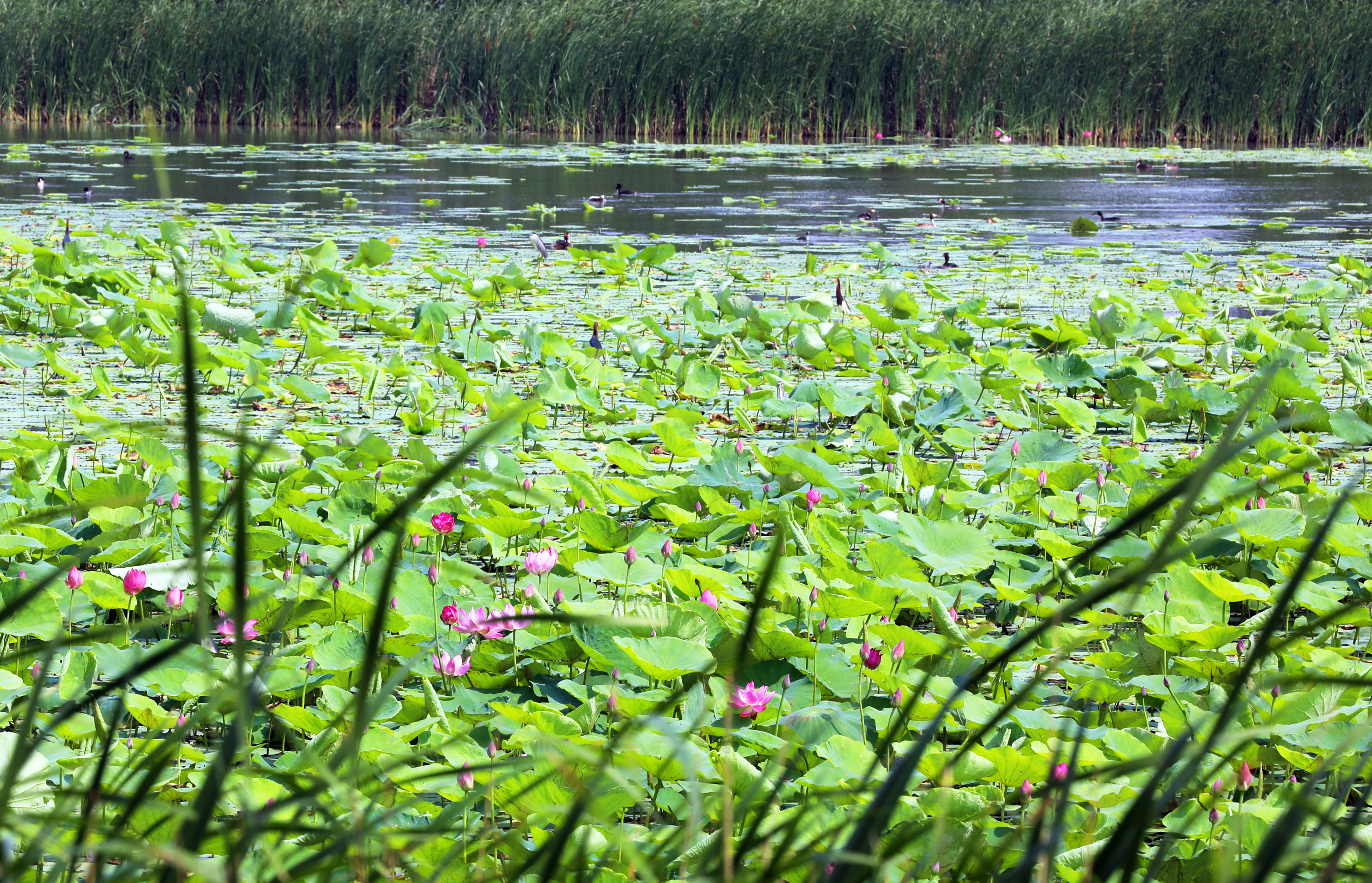 “藍天為幕,白云作襯,游魚穿梭荷葉間,候鳥停歇荷花上,這樣的畫面太震撼了!”攝影愛好者王先生手持相機,目光專注,正試圖捕捉荷花與候鳥同框的精彩瞬間。