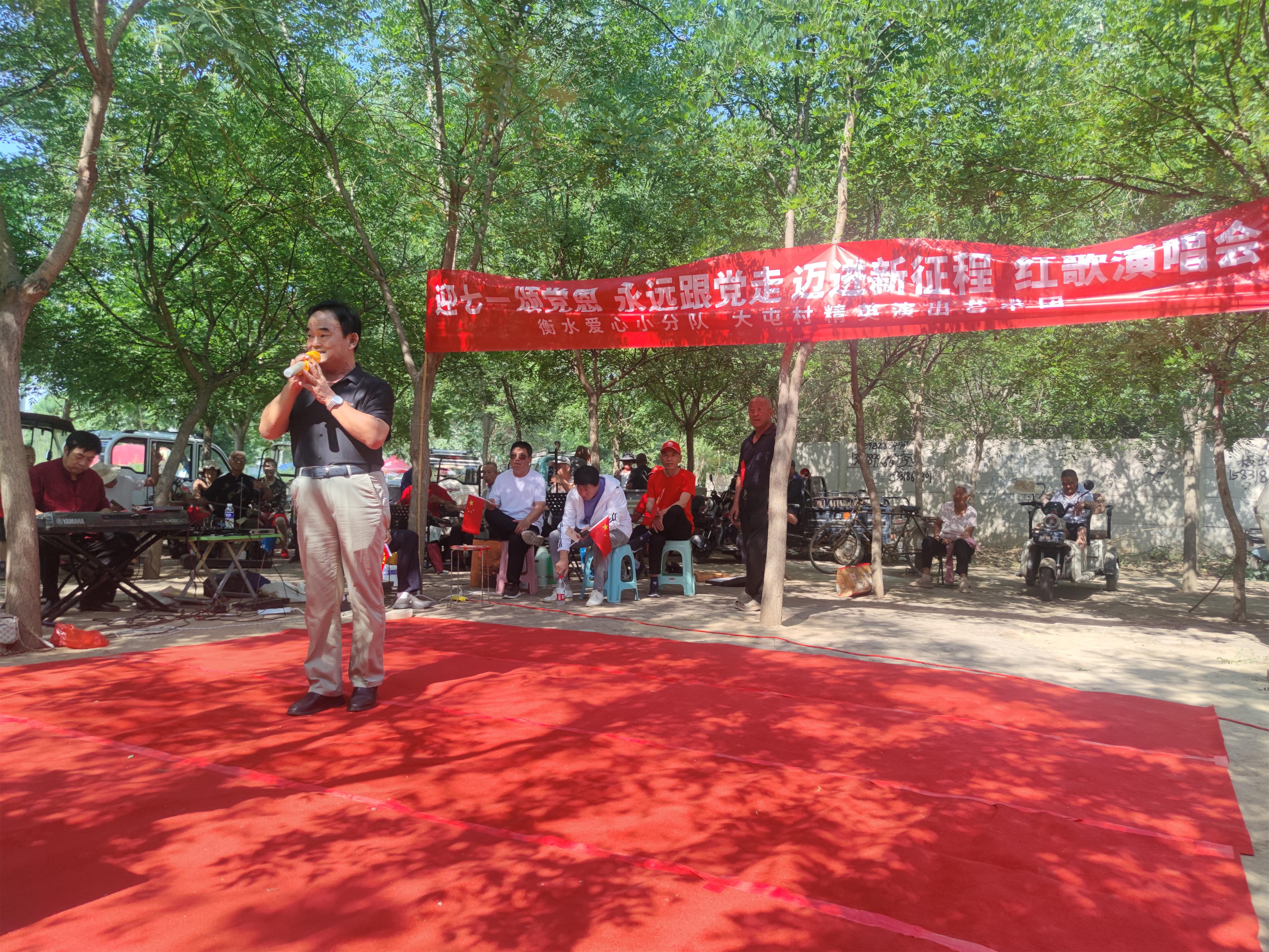 6月17日上午9時,衡水高新區大屯村旗幟招展,歌聲嘹亮。衡水愛心小分隊在此舉辦“迎七一,頌黨恩,永遠跟黨走,邁進新征程”主題紅歌演唱會。