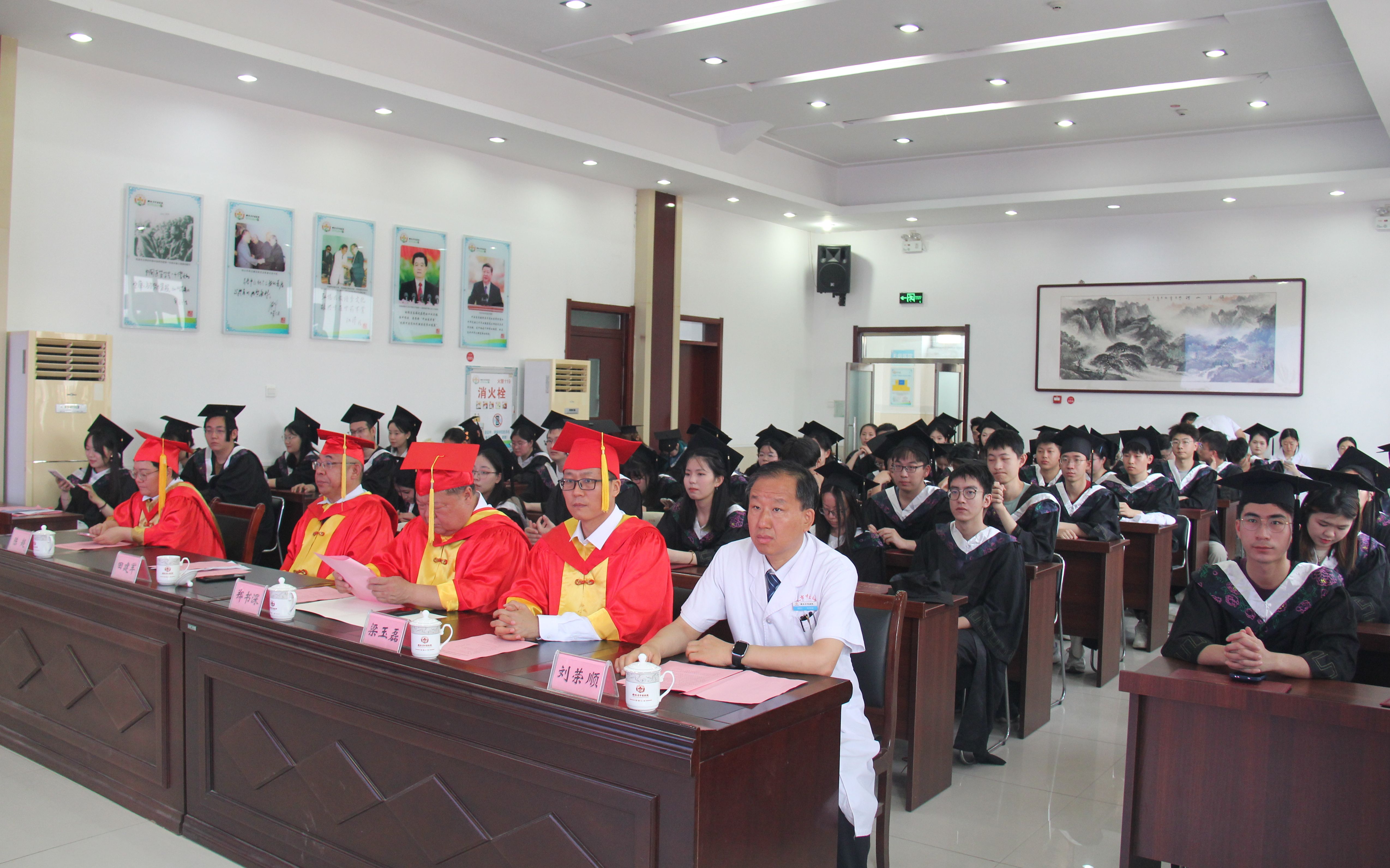 院長田建軍以“持敬守真,仁心精誠”的典雅文言寄予學子們臨別厚望,告誡大家行醫當懷臨淵履冰之慎,以精微之術守護生命;“融古通今,守正創新”的訓導,強調既要深研《靈樞》《素問》經典,亦需借現代科技煥發中醫之生機;“扎根厚土,仁澤桑梓”的期許,囑托無論身處廟堂抑閭巷,皆當以“鵬翼垂天”之志傳承燕趙醫風。其情殷殷,其言切切,滿堂學子無不動容,許多學子濕潤了眼眶在筆記本上記下這八個字。