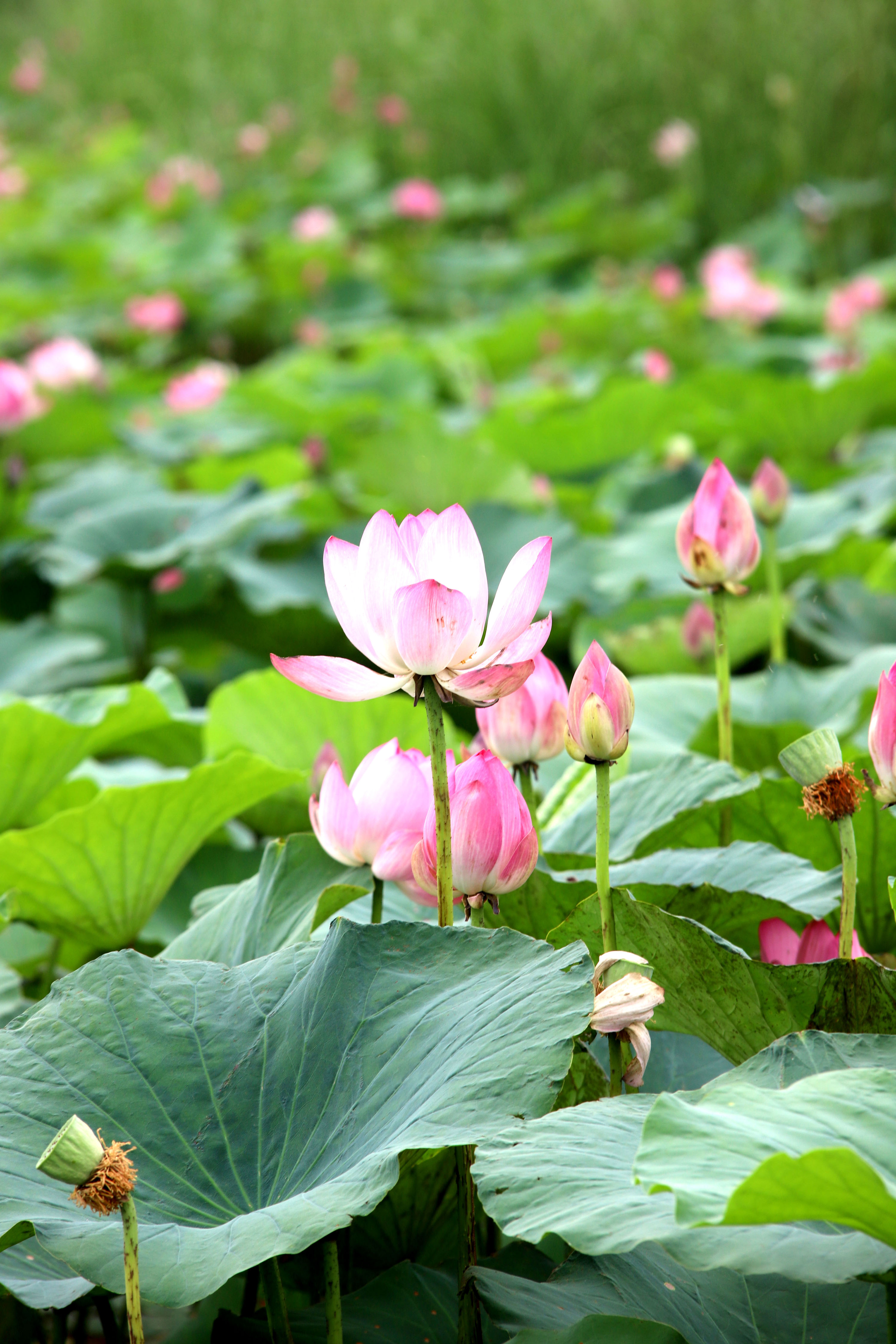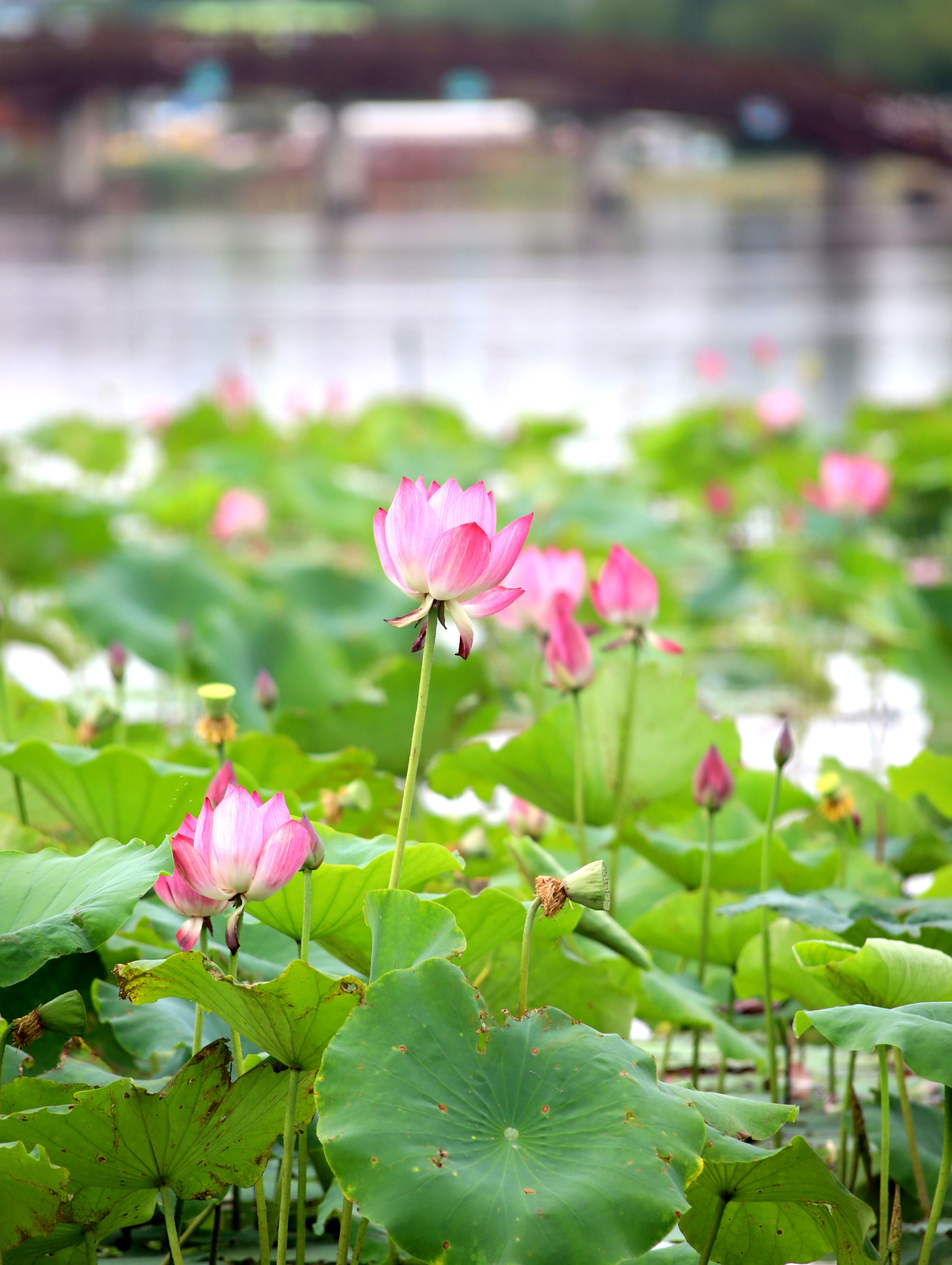 近日,衡水湖荷花進入觀賞期,成為夏日里一道亮麗風景。湖畔,粉荷或盡情綻放,舒展花瓣;或含苞待放,蓄勢待綻 。粉色花影搖曳,與碧水藍天相映成趣。
