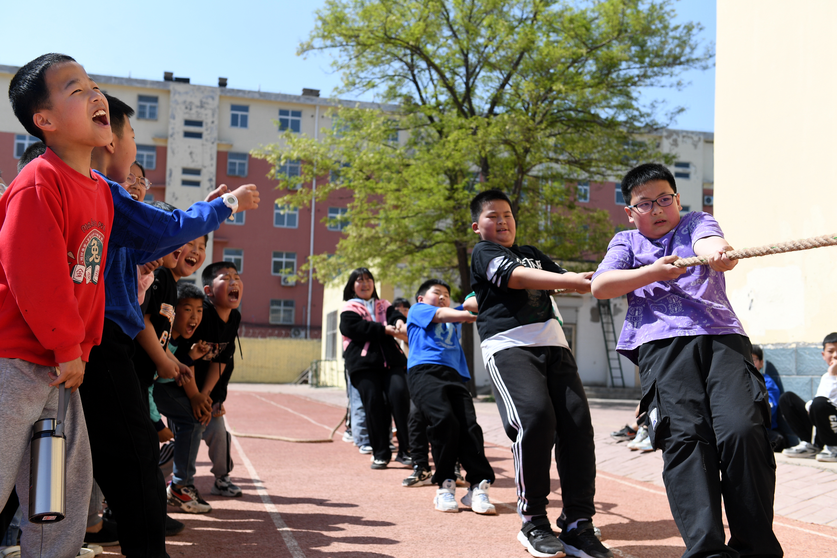 阜城縣霞口鎮中心小學學生參加大課間體育活動。崔賢飛 攝
