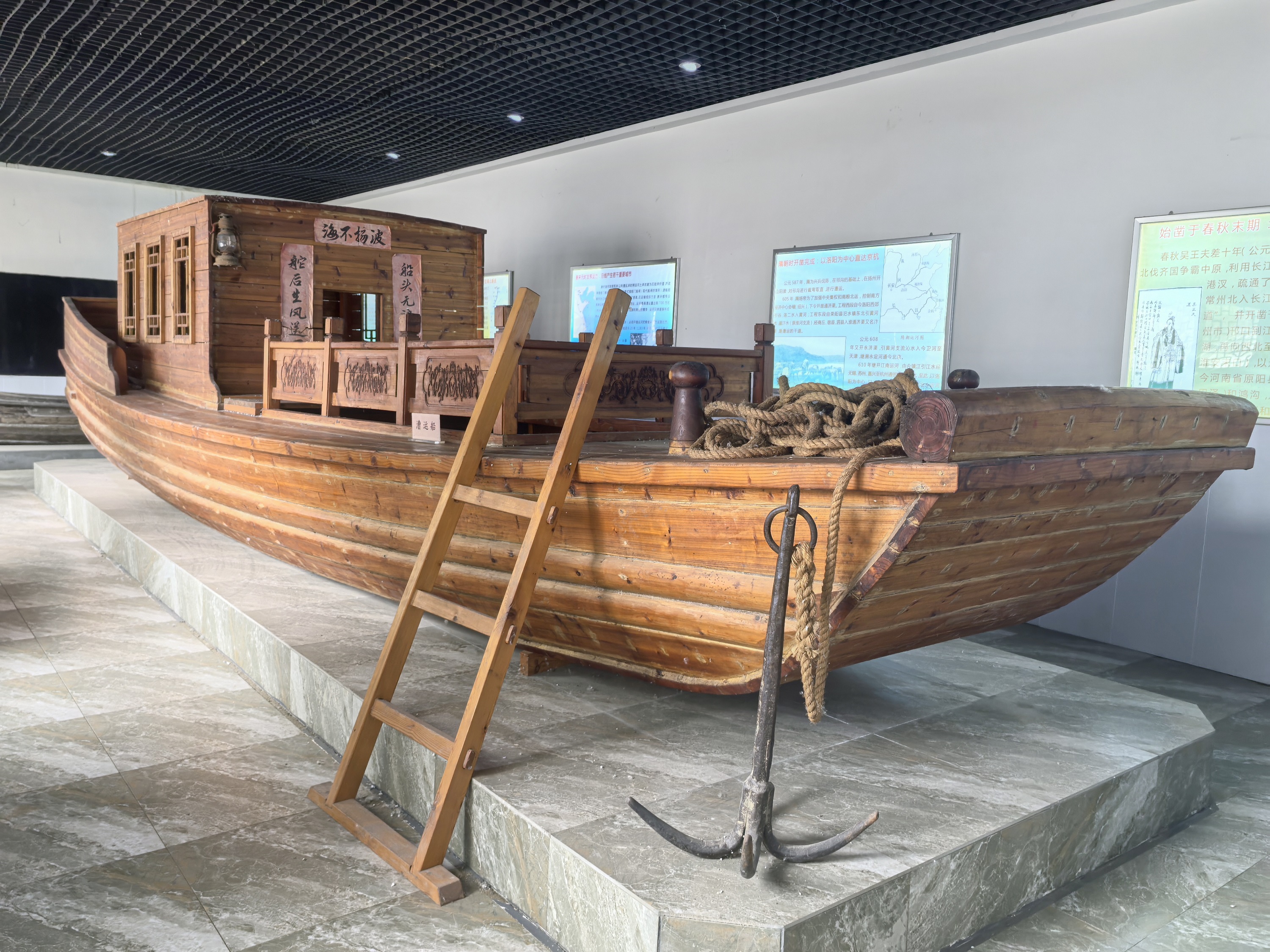 碼頭鎮魏圈村運河記憶博物館內復原的漕運船。王雅鳴 攝