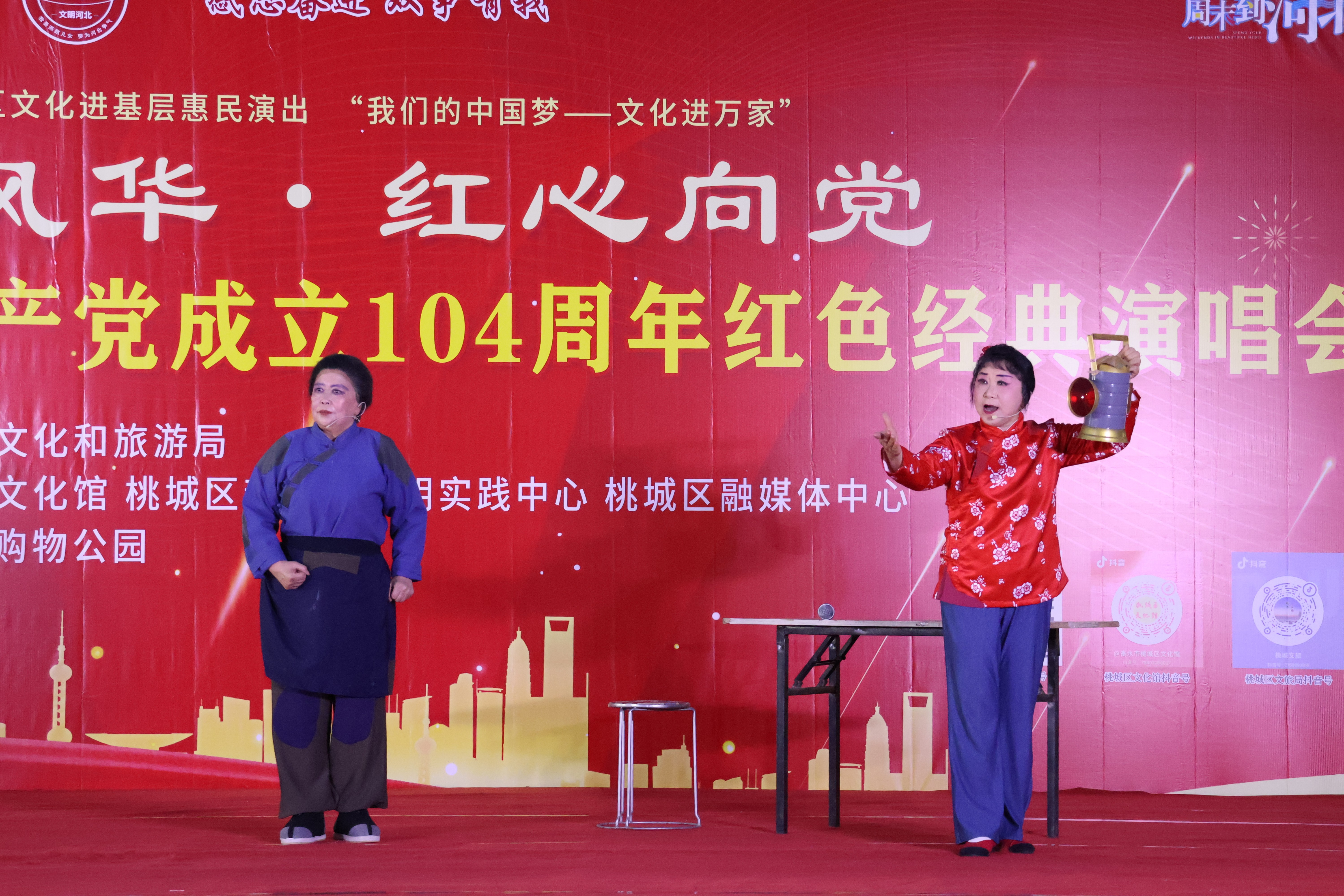 6月27日晚,“百年風華·紅心向黨”衡水市桃城區慶祝中國共產黨成立104周年紅色經典演唱會在市區愛琴海購物公園舉行,廣邀文藝愛好者共唱紅歌,抒發對黨的無限熱愛。