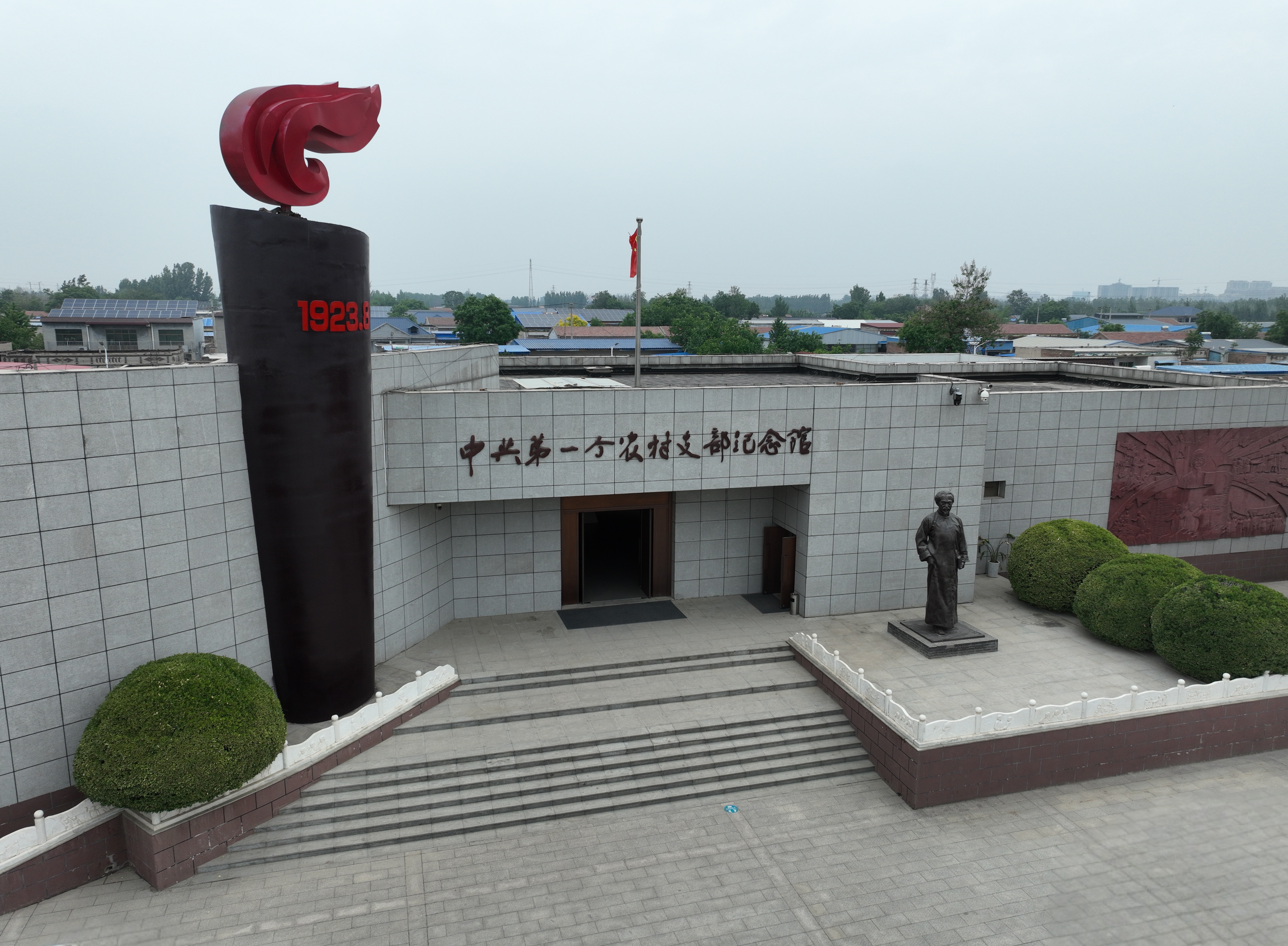 踏入臺城村中共第一個農村支部紀念館,時光的齒輪仿佛逆向轉動,將思緒帶回那段波瀾壯闊的歲月。館內,弓仲韜的雕像靜靜矗立,他身姿挺拔、面容堅毅,深邃目光似穿透歲月,凝視著曾為之奮斗的土地,讓人不禁想象他當年奔走呼號的英勇模樣。