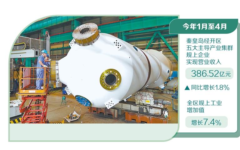 秦皇島經開區是1984年經國務院批準設立的全國首批、河北首家國家級經開區。連接華北與東北,緊臨渤海,有成熟的碼頭和綜合保稅區,產品運輸及進出口通道暢通,區位優勢及便利交通吸引裝備制造企業匯集于此。近年來,秦皇島經開區不斷壯大新能源及智能裝備制造、汽車及零部件、糧油食品精深加工、精密電子信息技術及智慧消防、生物制造及康輔醫療產業五大主導產業,構建現代產業體系,打造制造產業新高地。今年1月至4月,其五大主導產業集群規上企業實現營業收入386.52億元,同比增長1.8%;全區規上工業增加值增長7.4%。