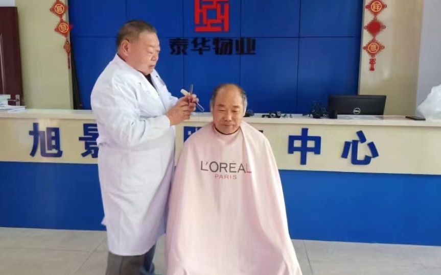 盡管室內冷氣充足,但為十幾位村民服務完時,郝宏銀的T恤已被汗水浸出深色斑塊,額角的汗珠滴落在圍布上,他顧不上擦拭,邊收拾工具邊對老人們說:“下個月1日,我還來。”