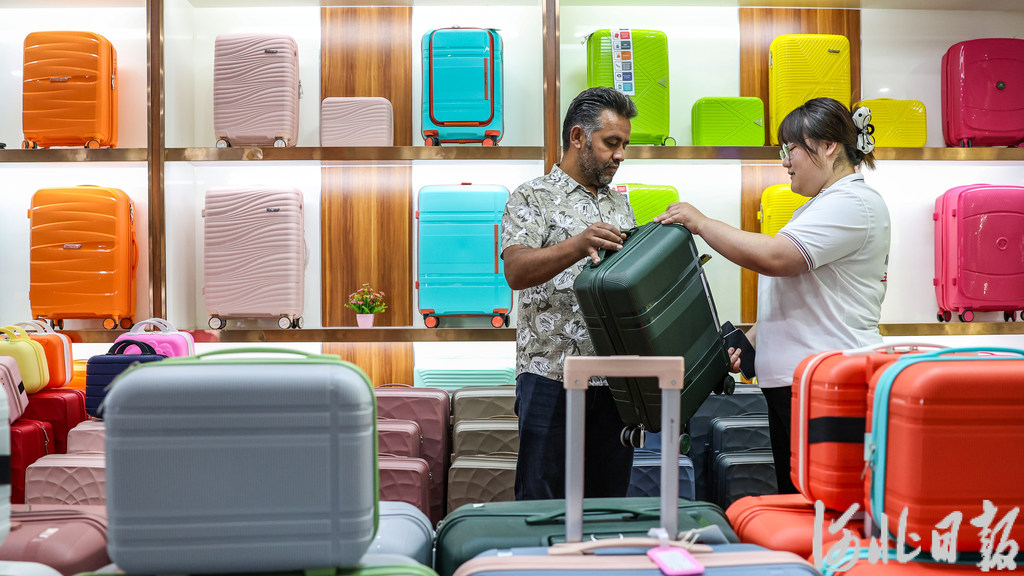 3米長的展位前,外商排著隊簽單,訂單單位從“個”變成“集裝箱”。“一個柜裝2000只拉桿箱,客戶一訂就是幾十個柜,一天單量夠我生產一年。”王金龍說,當許多企業不愿意來參加廣交會時,他積極主動走出“家門”,并帶著大量訂單回到白溝,在邯鄲大名建起了分廠,成為最早“出海”的白溝企業之一。