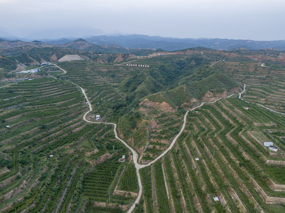 這是7月4日拍攝的阜平縣高效林果產業示范園區。(無人機照片)新華社記者 李鑫 攝