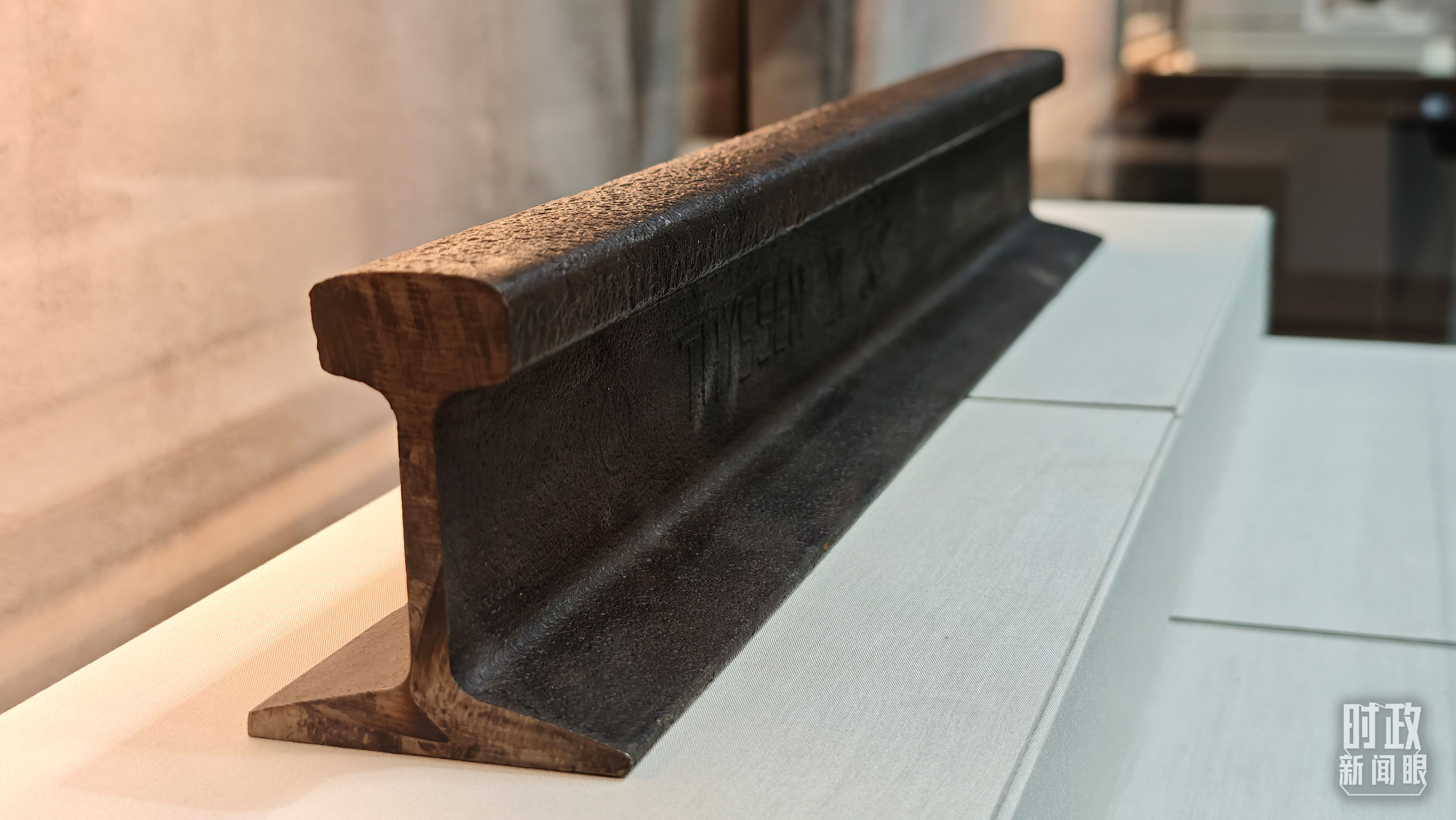 △百團大戰紀念館展陳——正太鐵路鐵軌。(總臺央視記者許永松拍攝)