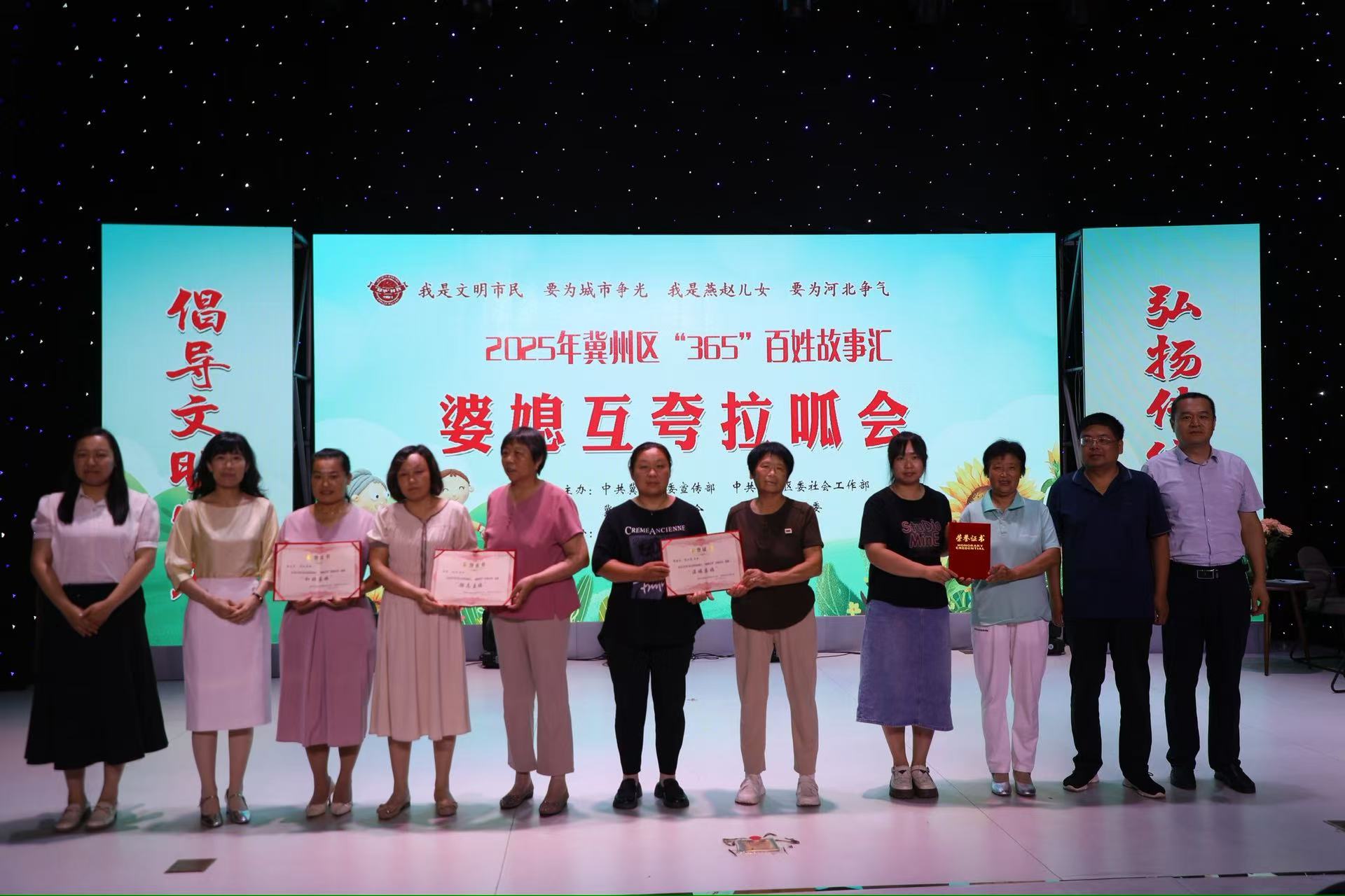 當天,在這場由冀州區委宣傳部、冀州區委社會工作部、區婦女聯合會、共青團冀州區委聯合舉辦的“婆媳互夸”拉呱會上,通過“婆媳之間互夸互贊”的溫馨互動,吸引了10位婆媳在舞臺上真情流露。從日常瑣事的暖心細節到相扶相持的動人瞬間,一個個鮮活的故事折射出良好家風。