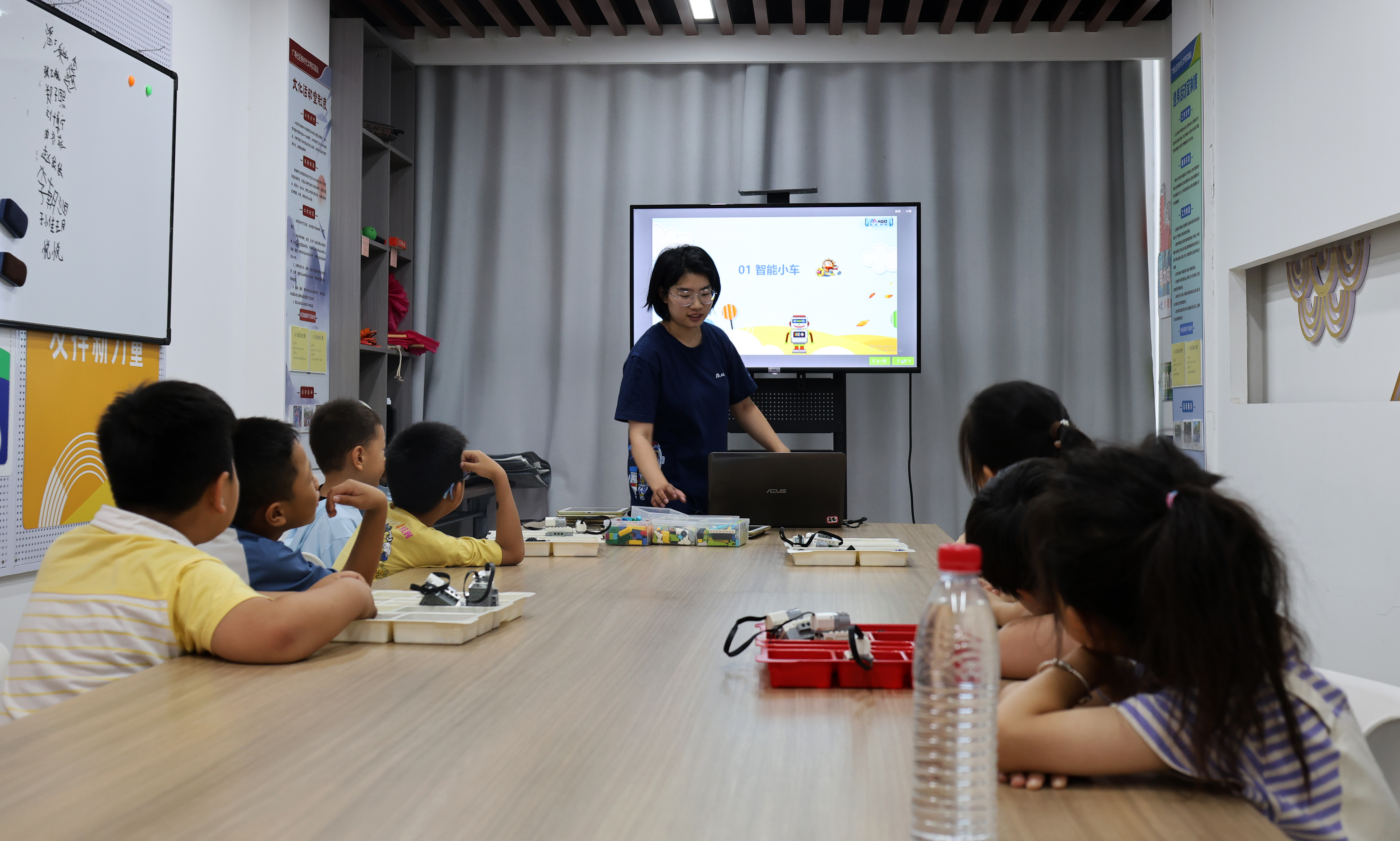 活動以“樂高筑夢 科普啟航”拉開序幕。老師按分齡指導:低齡兒童用積木搭建汽車,在拼搭中感知“形狀與平衡”;大齡孩子則嘗試編程控制樂高小車,在拖拽模塊的互動里理解邏輯概念。五顏六色的積木塊在小手中翻飛,專注的眼神與成功的雀躍,讓活動室成了充滿奇思妙想的樂園。