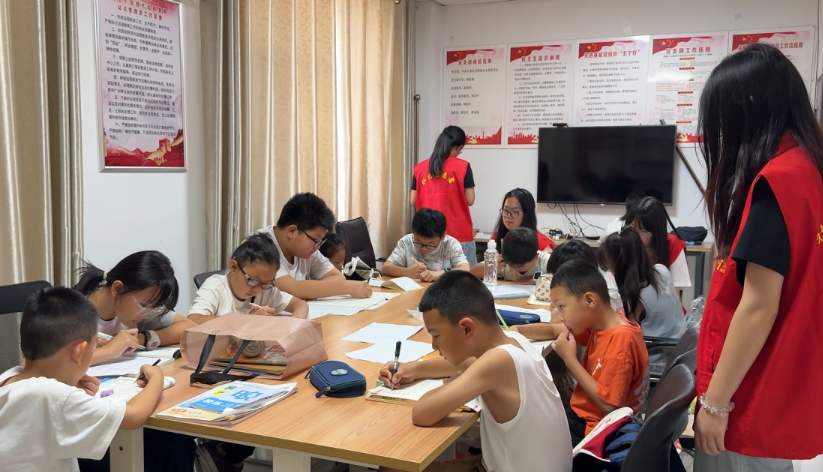 大學生志愿者們已經早早等在教室里,他們穿著統一的志愿者服裝,臉上洋溢著青春的笑容。這些志愿者剛從校園里走來,太懂小學生寫作業時的“小糾結”:有時是題目繞不過彎,有時是粗心大意,有時是貪玩分心。“作業有不會的嗎?”“來,咱們一起看看這道題。”“你看,這樣一算,答案就出來啦。”在志愿者的耐心陪伴下與慢慢講解中,孩子們愉快地學習,沒有了往日的焦慮和煩躁。“孩子在社區既能寫作業,又能學到東西,我們上班也安心多了。”家長們的言語中流露出感謝之情。